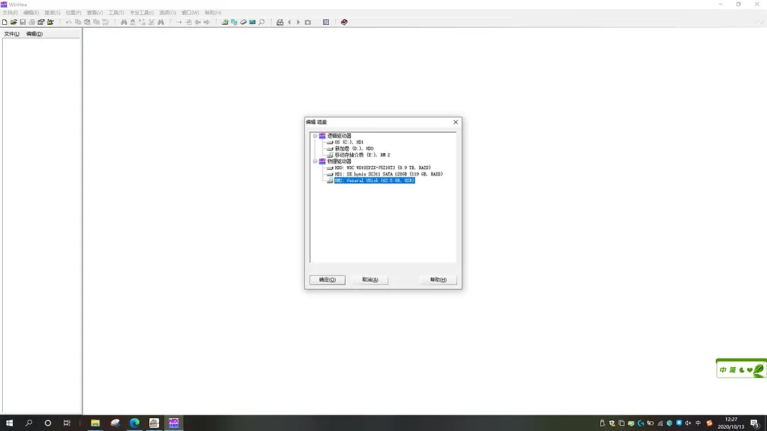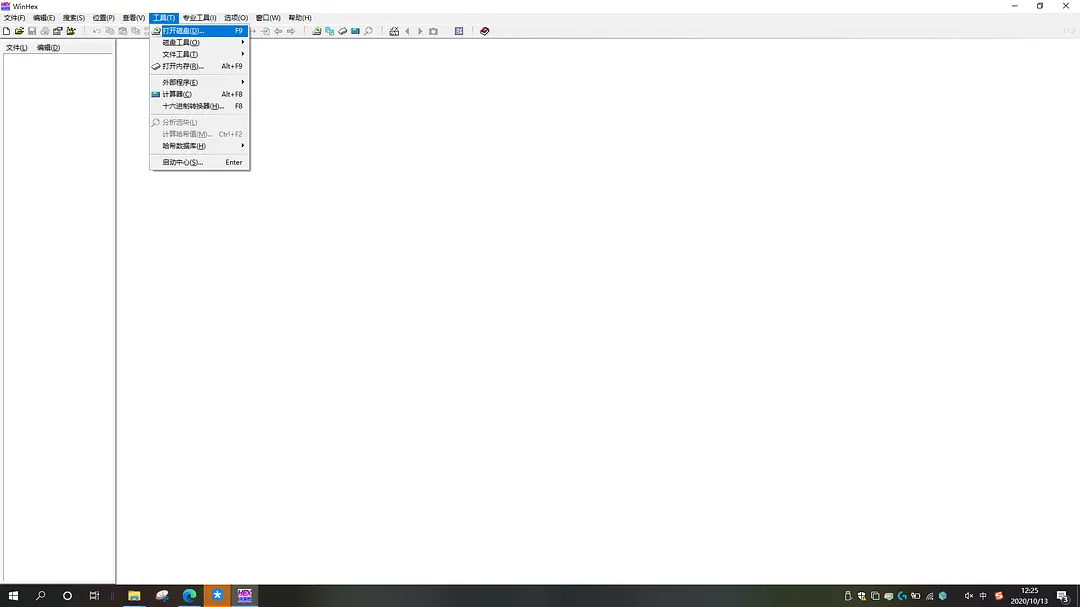 首先我们要以管理员身份打开winhex,然后选择打开磁盘。