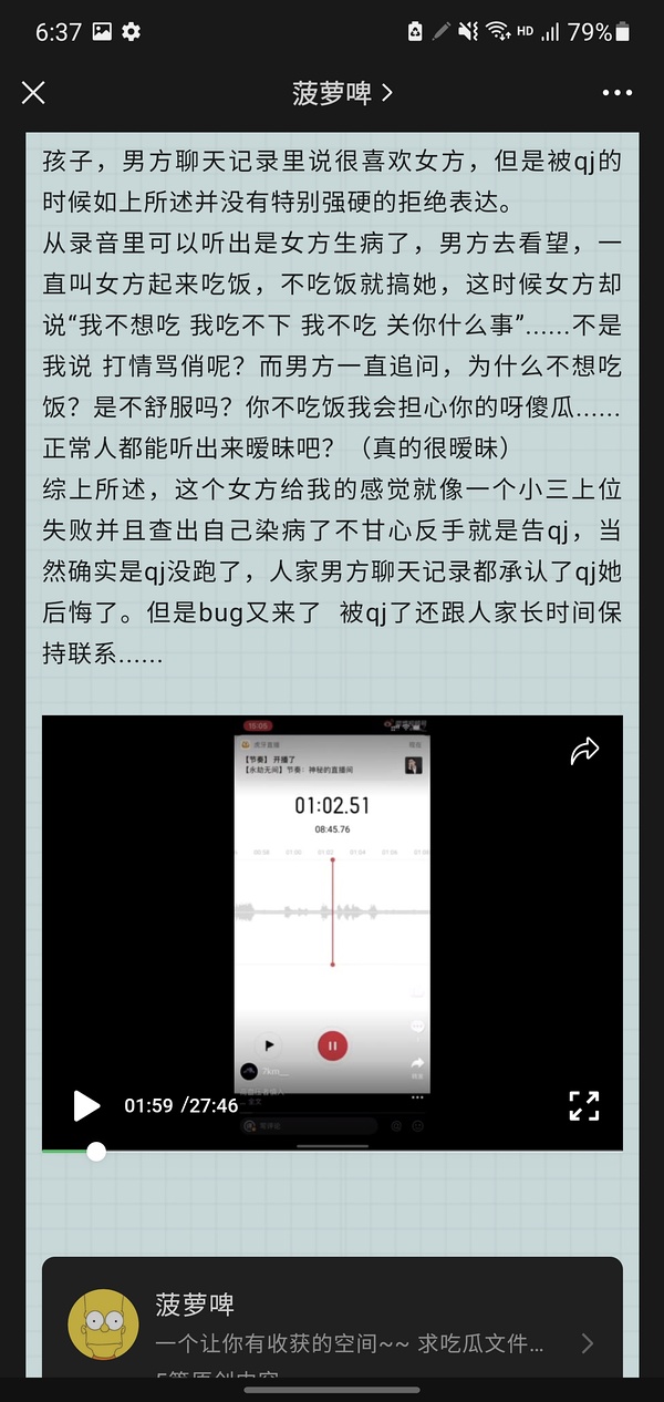 晶哥你微信搜拜拜啦人间录音,有个叫菠萝啤的公众号直有,就是前面楼主一说不晓得这是不是也是剪辑过的。最初受害人放出来的录音她删了应该是找不到了