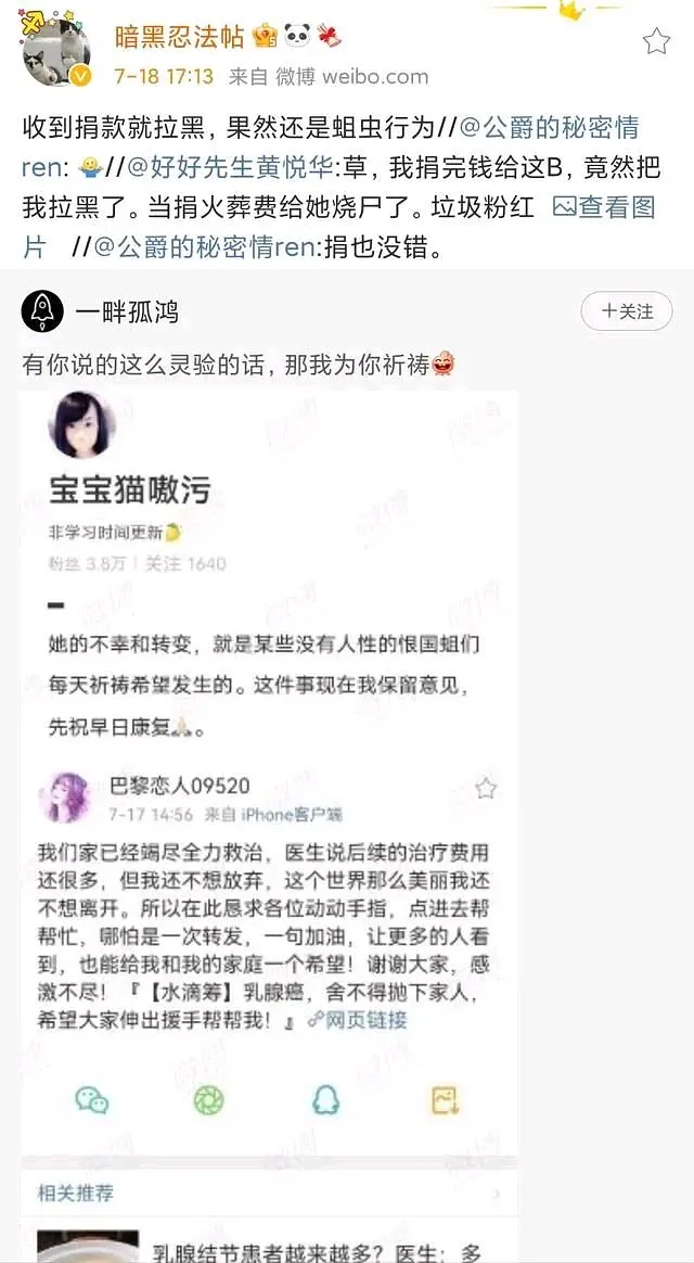 Link Icon 我还是一样态度,基于人道主义希望她康复,并且无论任何情况对疾病的嘲讽都是错误的 但我也不会给这种人捐钱。