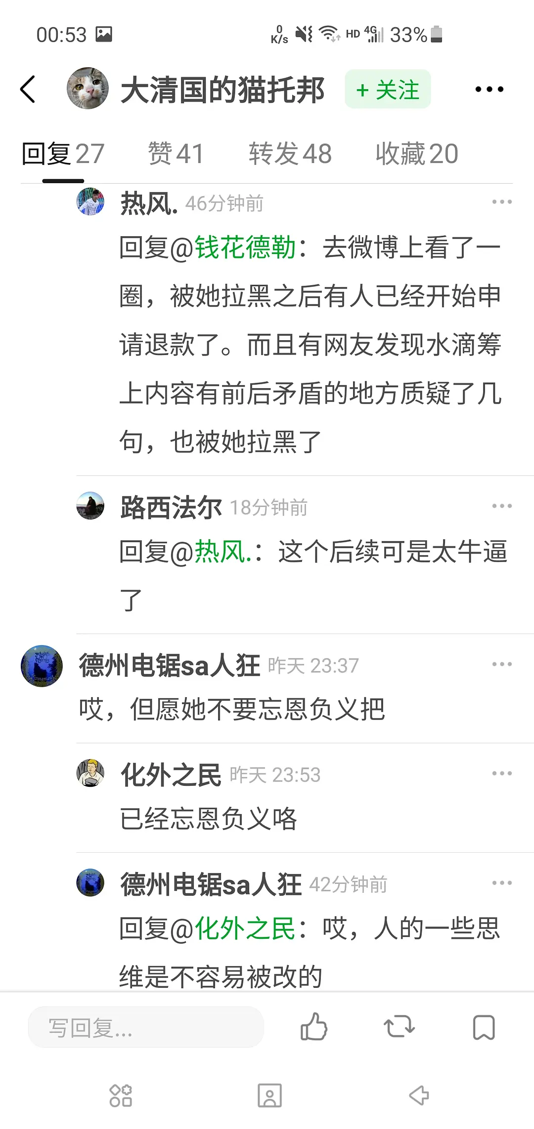 Link Icon 生活真够刺激😅大早上起来一看又是这个。 消息暂且存疑,我在微博找了一圈,目前没发现比主楼更多的信息。 我捐钱给这货不是求什么回报,但如果是单纯诈骗就是另一回事了。水滴筹有退款功能,担心受骗的波友可以现在就去申请退款。