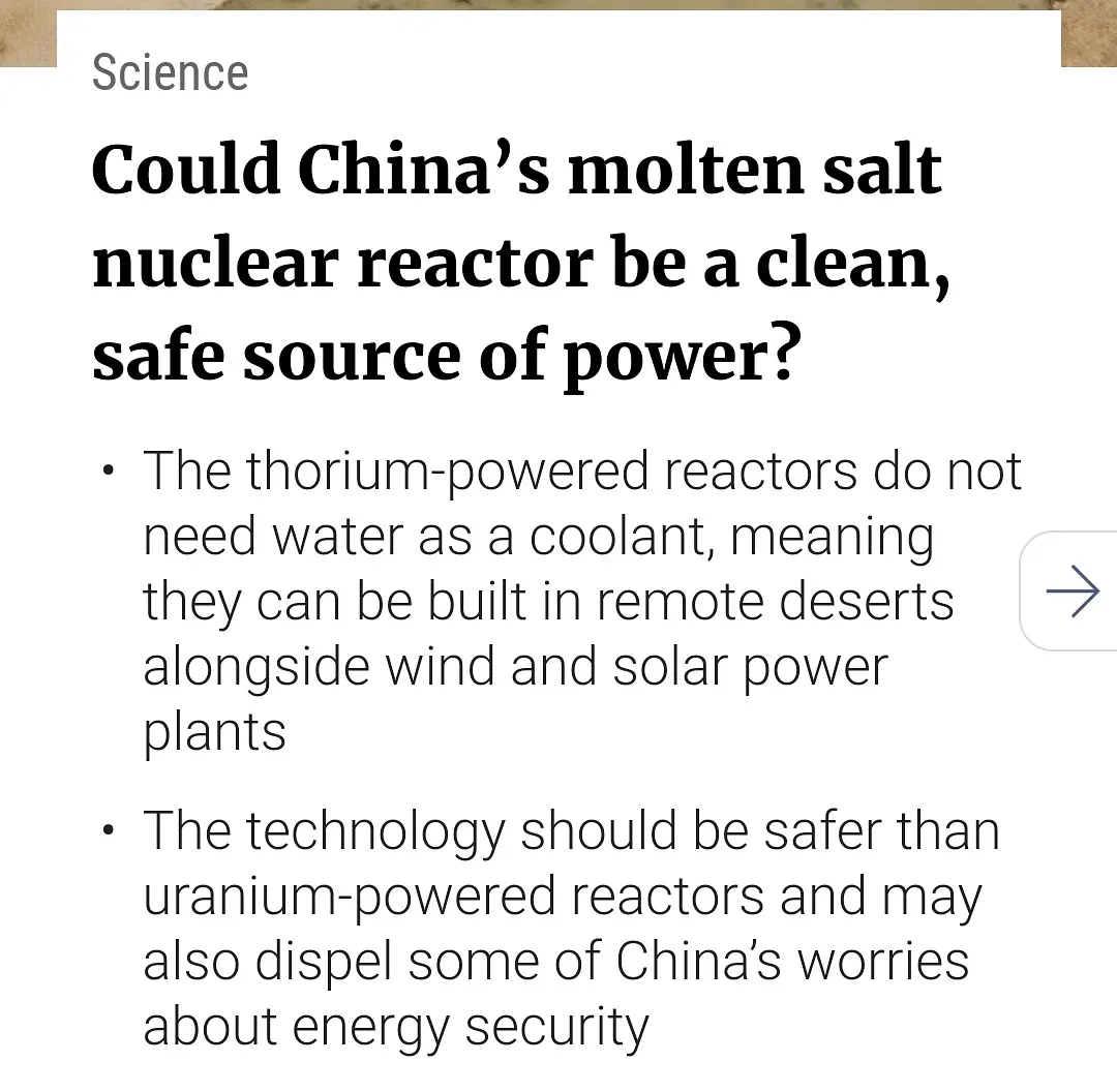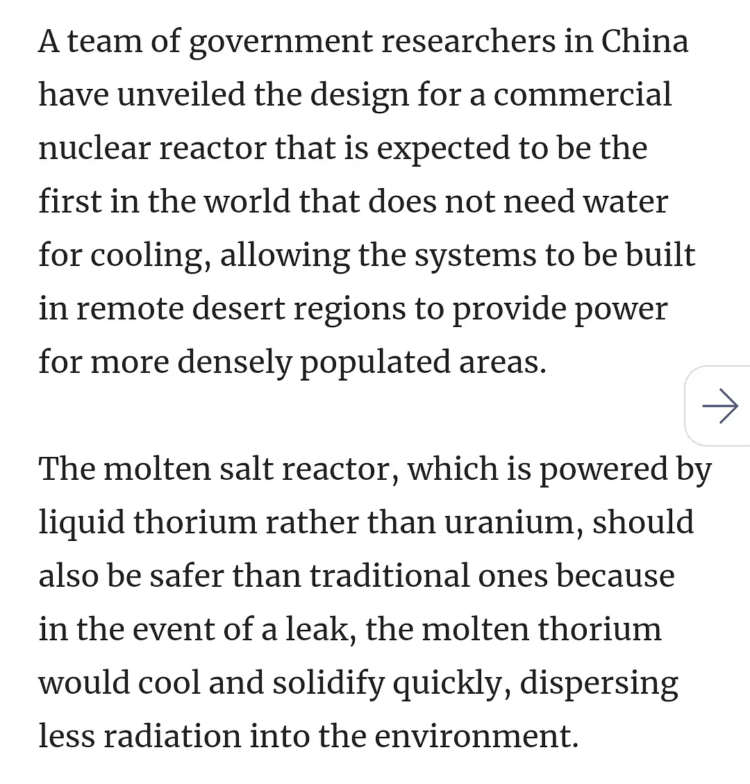 🀄拟建首个无水核反应堆赤座阿卡林2021/07/19 05:17:24 SCMP:该反应堆可以在沙漠地区建造,为人口稠密区提供电力。目前计划在2030年前完成第一个该新式商业反应堆的建造。🀄计划在1D1L国家推广这一反应堆。Loading...Loading... Loading Spinner