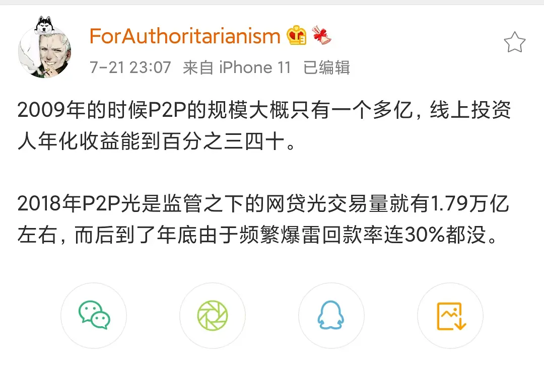 2018年万亿规模P2P回款率不超过30%赤座阿卡林2021/07/22 06:05:57 至于钱💰到了哪儿,我暂且蒙在加州的大豪斯和温哥华的法拉利里。这种规模的骗局,没有少爷们分成,可能么?Loading... Loading Spinner