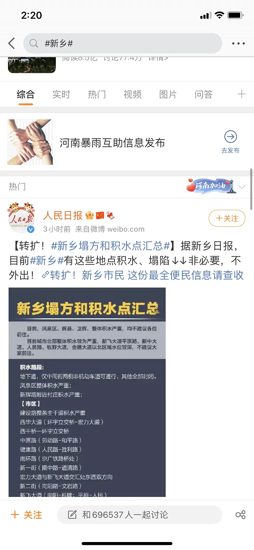家里有亲戚在,也有同学是新乡的,反映水位还在上涨,且已出现断水断电的情况