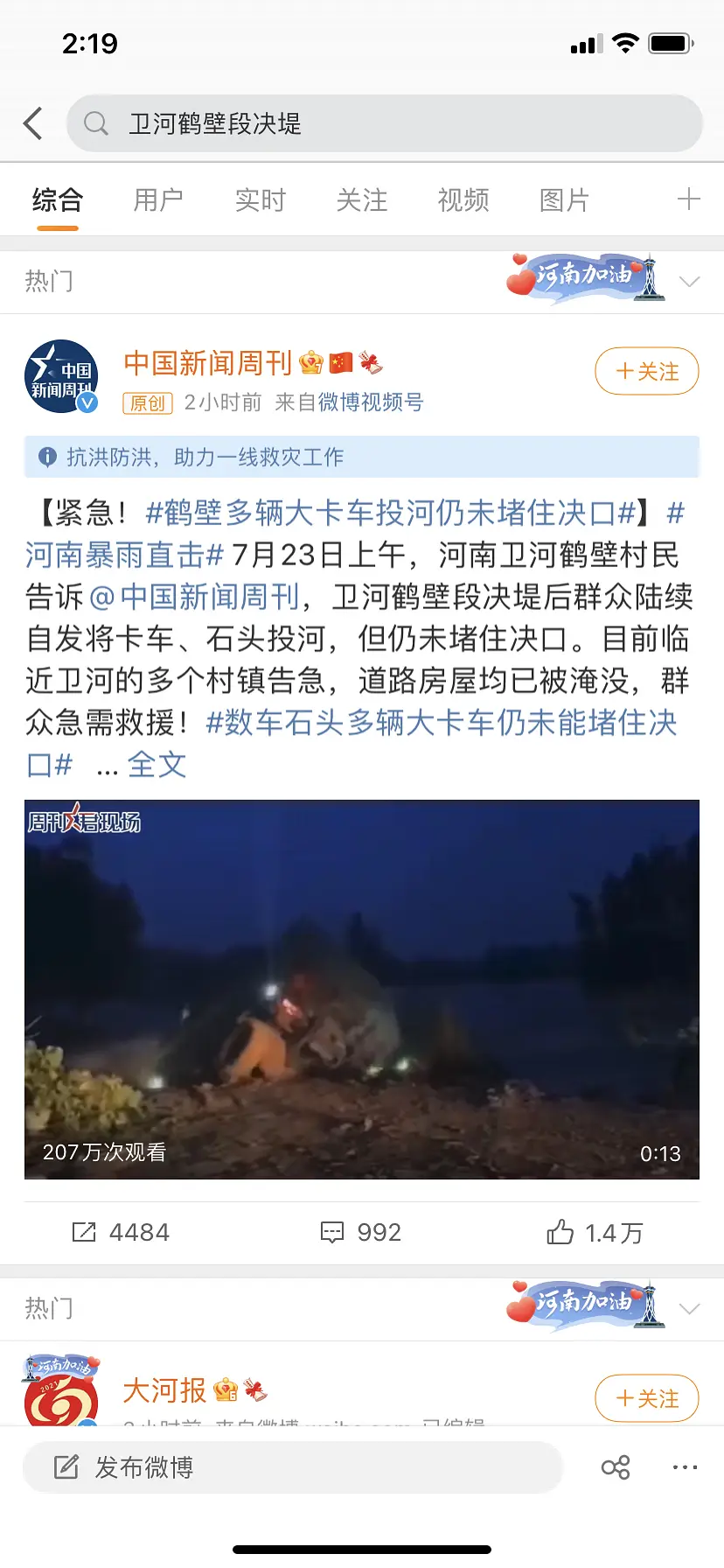 看电视新闻再看微博,感觉只有民间在乎洪水
