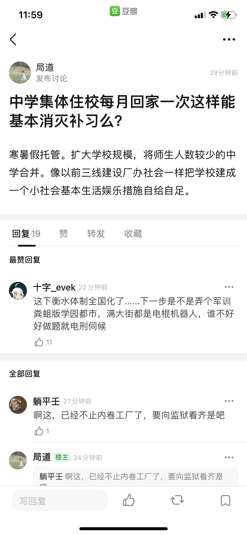 这个和社会化抚养一样 不就是在消灭家庭 改变社会结构了我是~被一天了2021/07/23 16:01:00 Loading...本人小学到初中都是寄宿有的同学夸张到回家就是自己读书玩游戏 怕不是几个月下来和父母都没说过几句话 从幼儿园开始住宿到大学? Loading Spinner