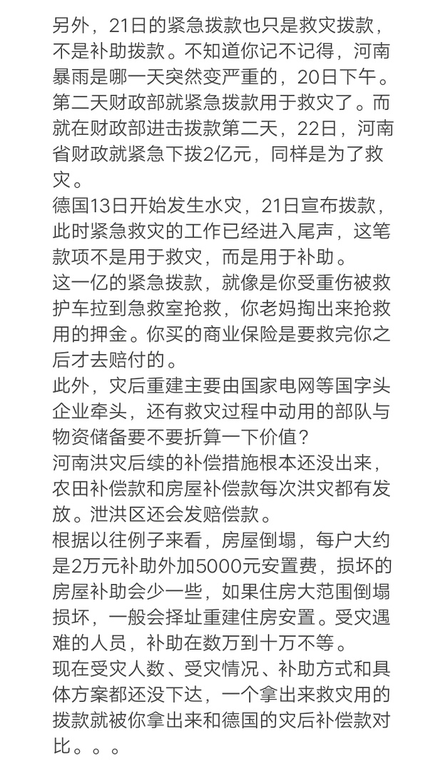 这让我想起刚刚在知乎上看到的留德品客,说某州政府发了4亿欧元洪水补贴“说难听点,够干啥的”,这下精德分子了