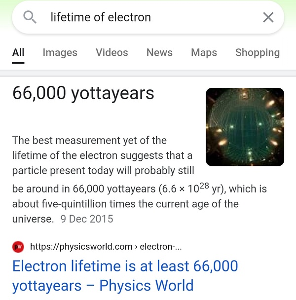 之前有人测了一个电子存在的寿命至少超过6.6*10^28年