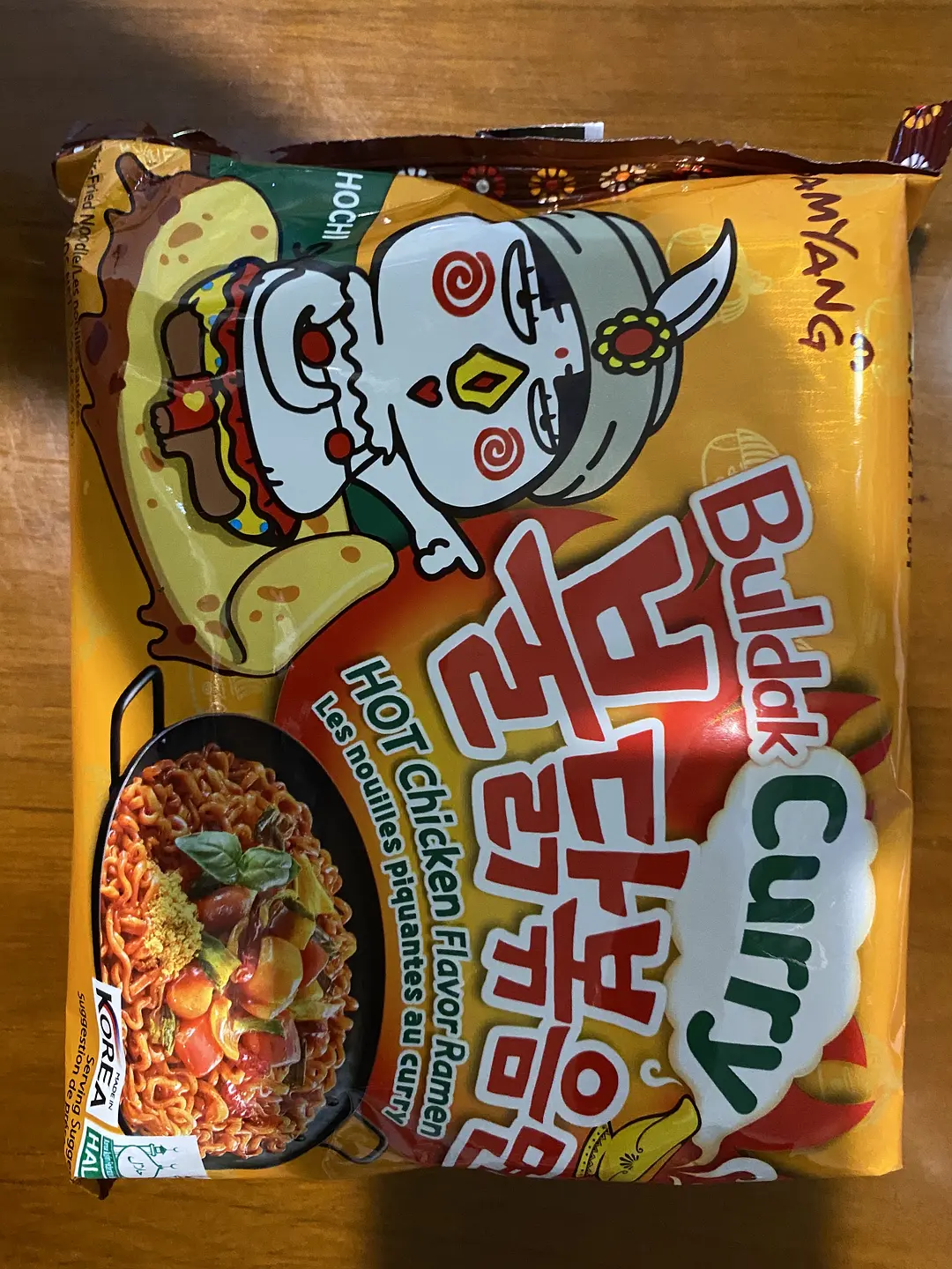 这包火鸡面是本贵物吃的第一包火鸡面,因以前一直被反复忽悠说火鸡面南方人吃不下去,吃流泪,所以一直不敢尝试。这次尝试了一下这个低辣度版的火鸡面,感觉还可以,辛辣程度相当于老干妈,没有特别不适,低于香辣牛肉面,咖喱味一般,吃了一半才吃出来咖喱味。黑色包装的火鸡面据说辣度大于这种咖喱火鸡面,估计短期内不太敢尝试了。
