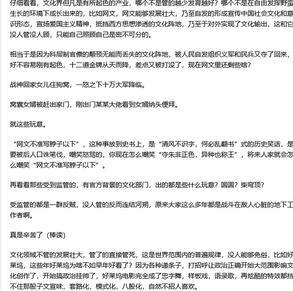 应该是还是祂说了一句"早该管管了" 然后下面的虾兵蟹将们争先恐后揣摩上意 只是全面加强社会控制这场满汉全席的一盘小菜而已 这个现象背后的本质就是空前的的极権化