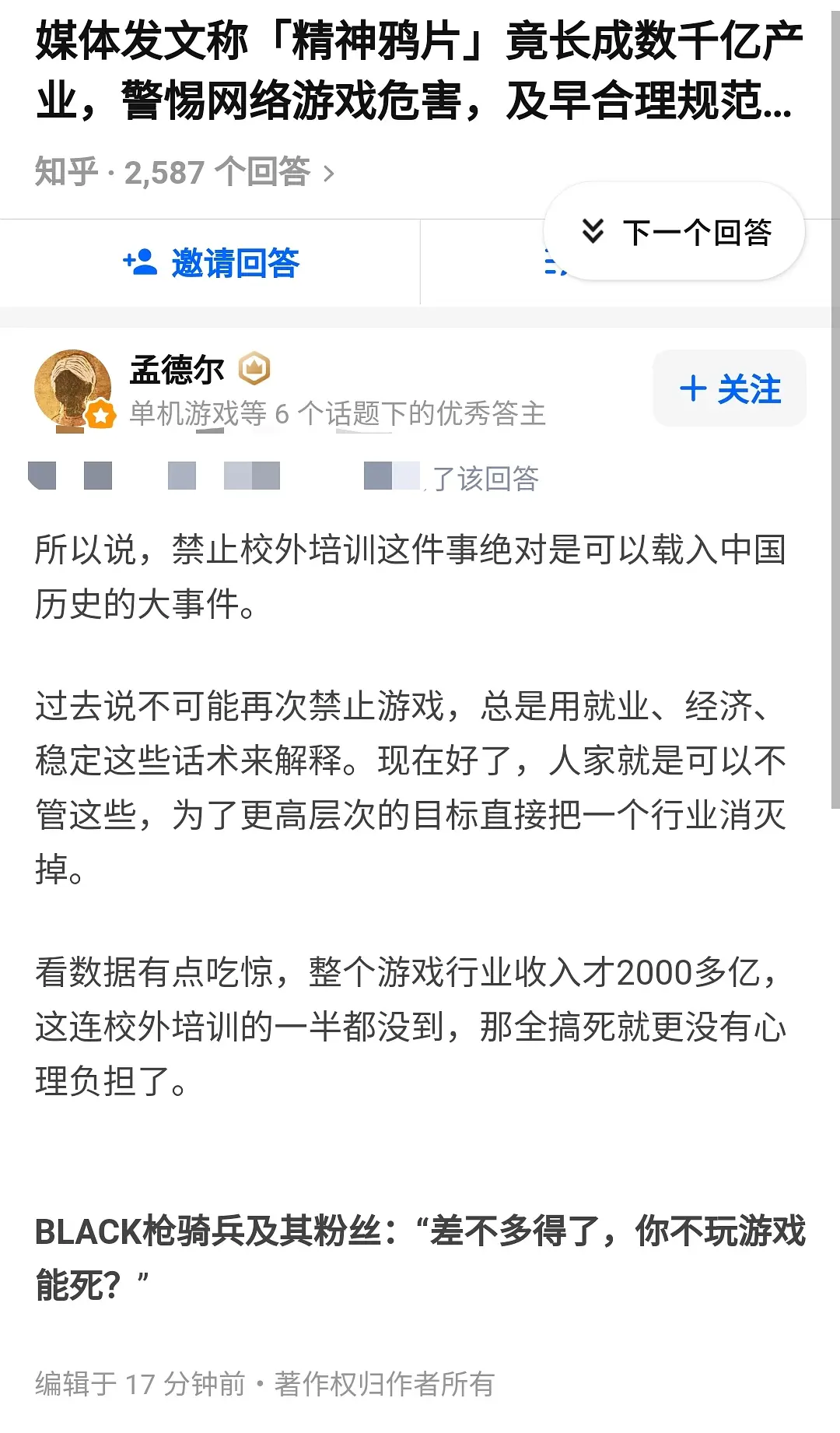 我正好在和一个群的群友讨论教培和游戏谁大的问题