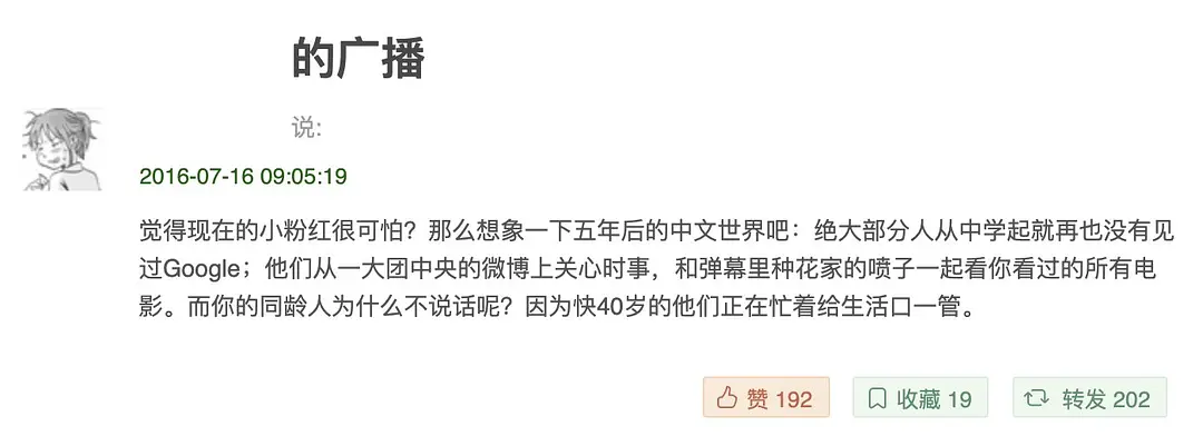 还有一点不一样,预言帝也低估了宣传。除了团官duang这些媒体,还雨后春笋般出现了如心医、留日等自媒体,观一系的重量级媒体,对青少年的坏影响不可估量。
