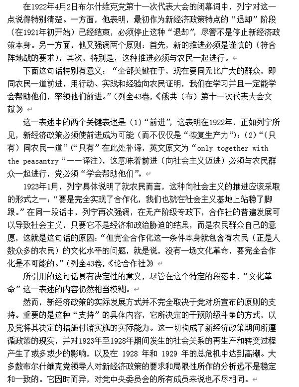 NEP是进攻,而不是退却。它还包含着对农民的文化改造,比较像桃花石的路线。