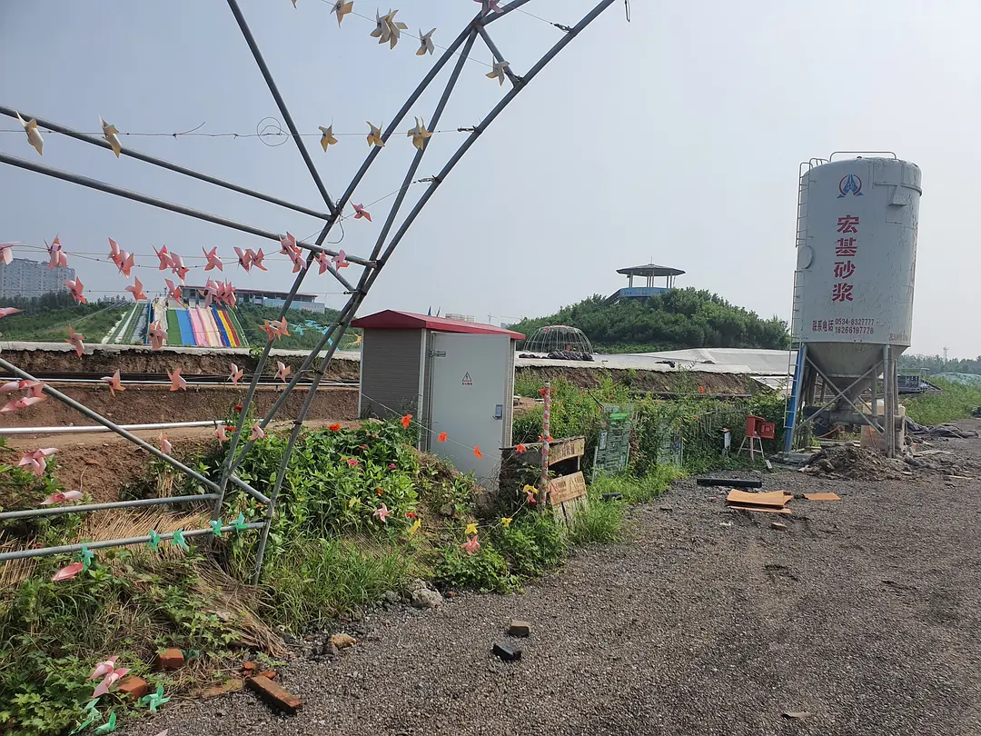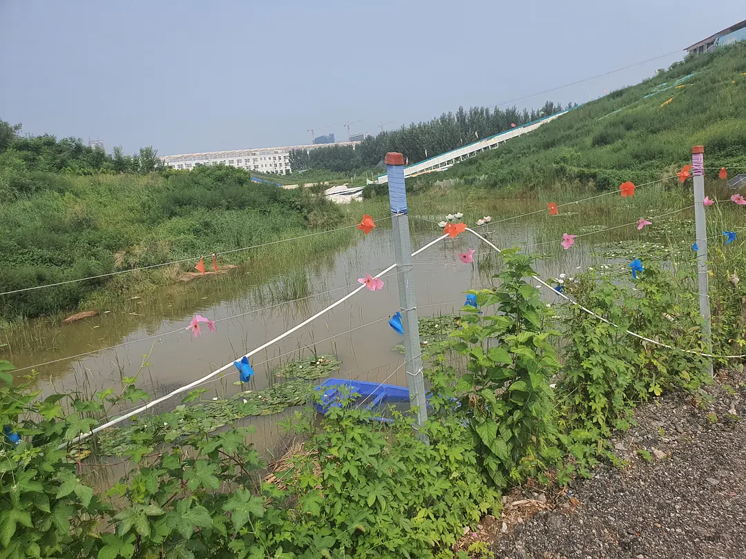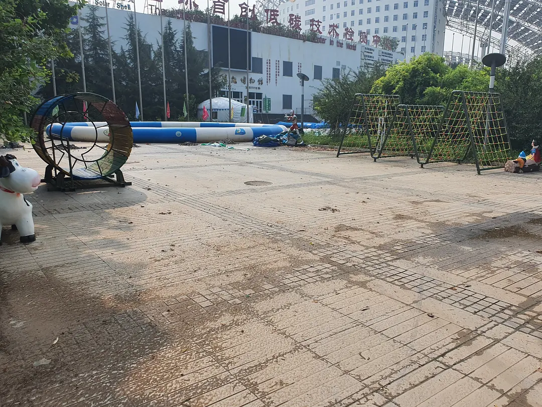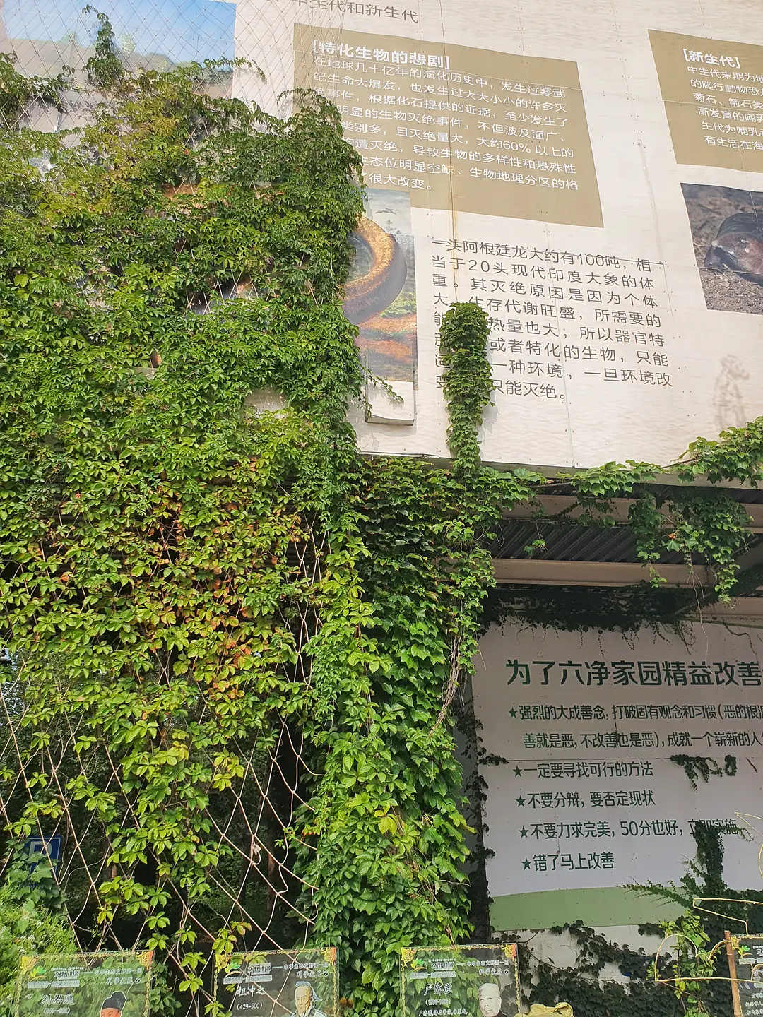 今天去的时候不知道为什么停电了,这就很讽刺了——因为停电,这里的能量供应的确是以太阳能为主,只不过是由植物接收的。爬山虎野蛮地在建筑墙面上扩张,无人修剪的树木阻挡了一些小路。如果说利用清洁能源是为了实现人与自然的和谐共处,那么这里人与自然的交融则非常的不协调。建筑内部缺少维护,地面上到处石子,在这种人类留下的写满了草率的痕迹上,植物仍然在顽强的生长。尽管蝉鸣不断,但是这种如同后现代废墟一样的鬼地方只会让人坏掉。由于太晒,早上也没吃饭,我并没有完整的走一遍,就躲进了儿童活动中心吃小卖部买来的零食。(结果下午回宿舍又被空调吹的腹泻了)