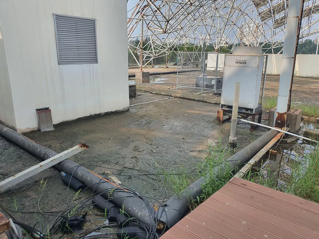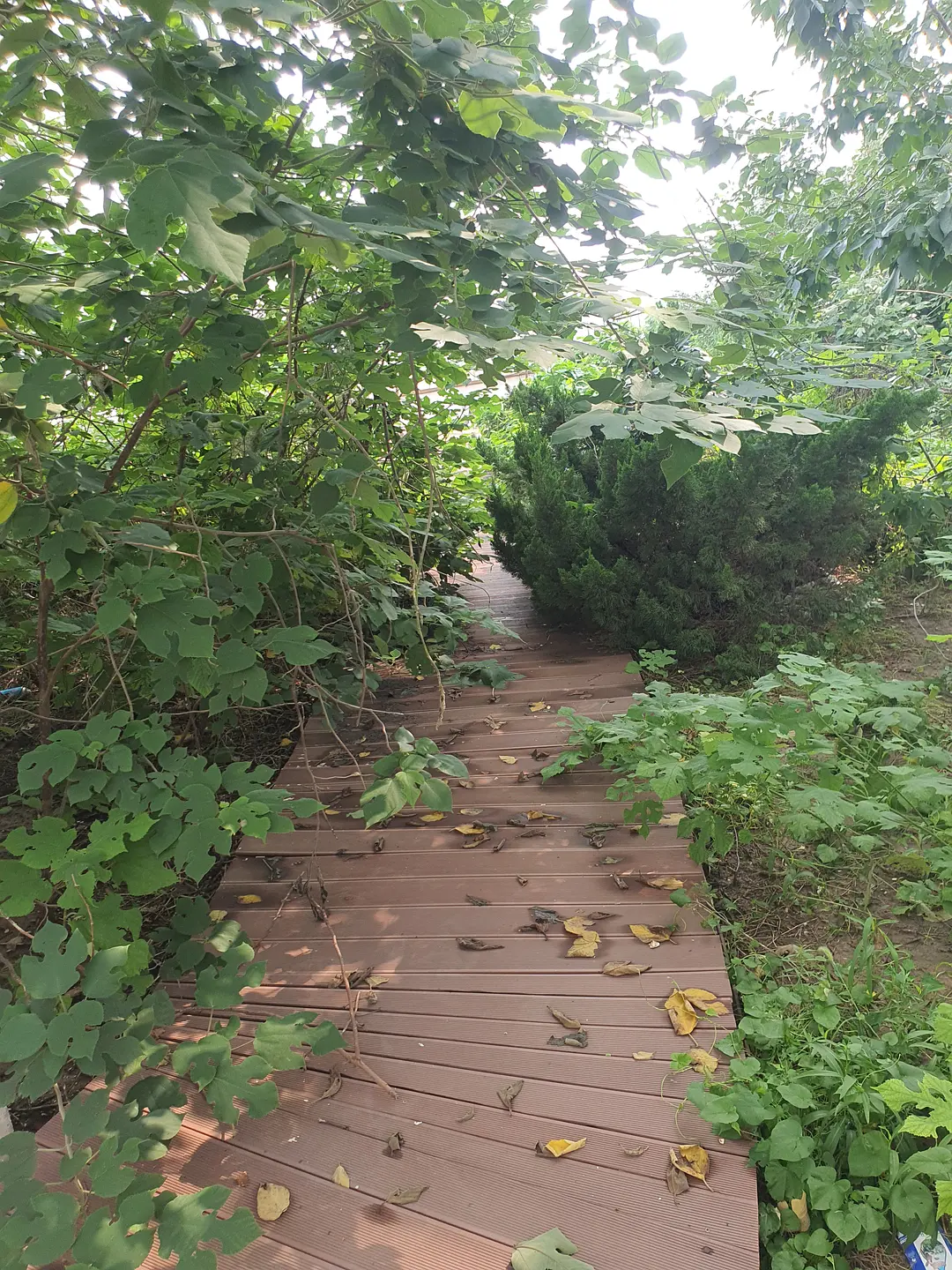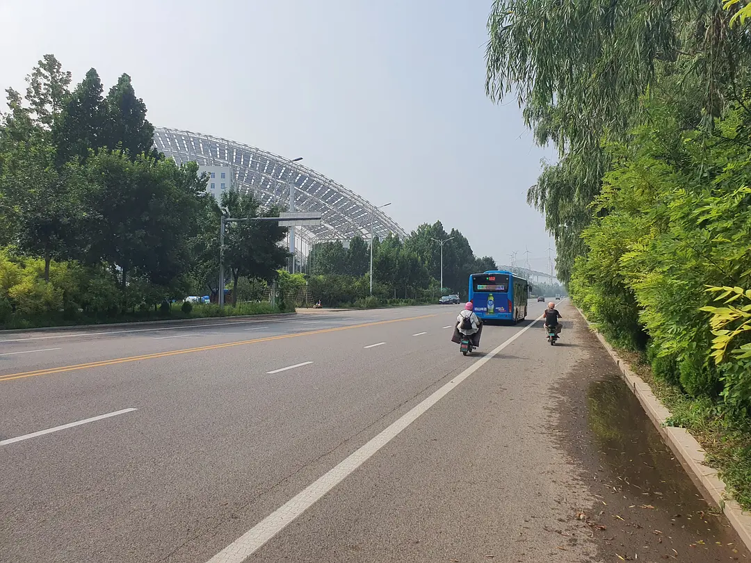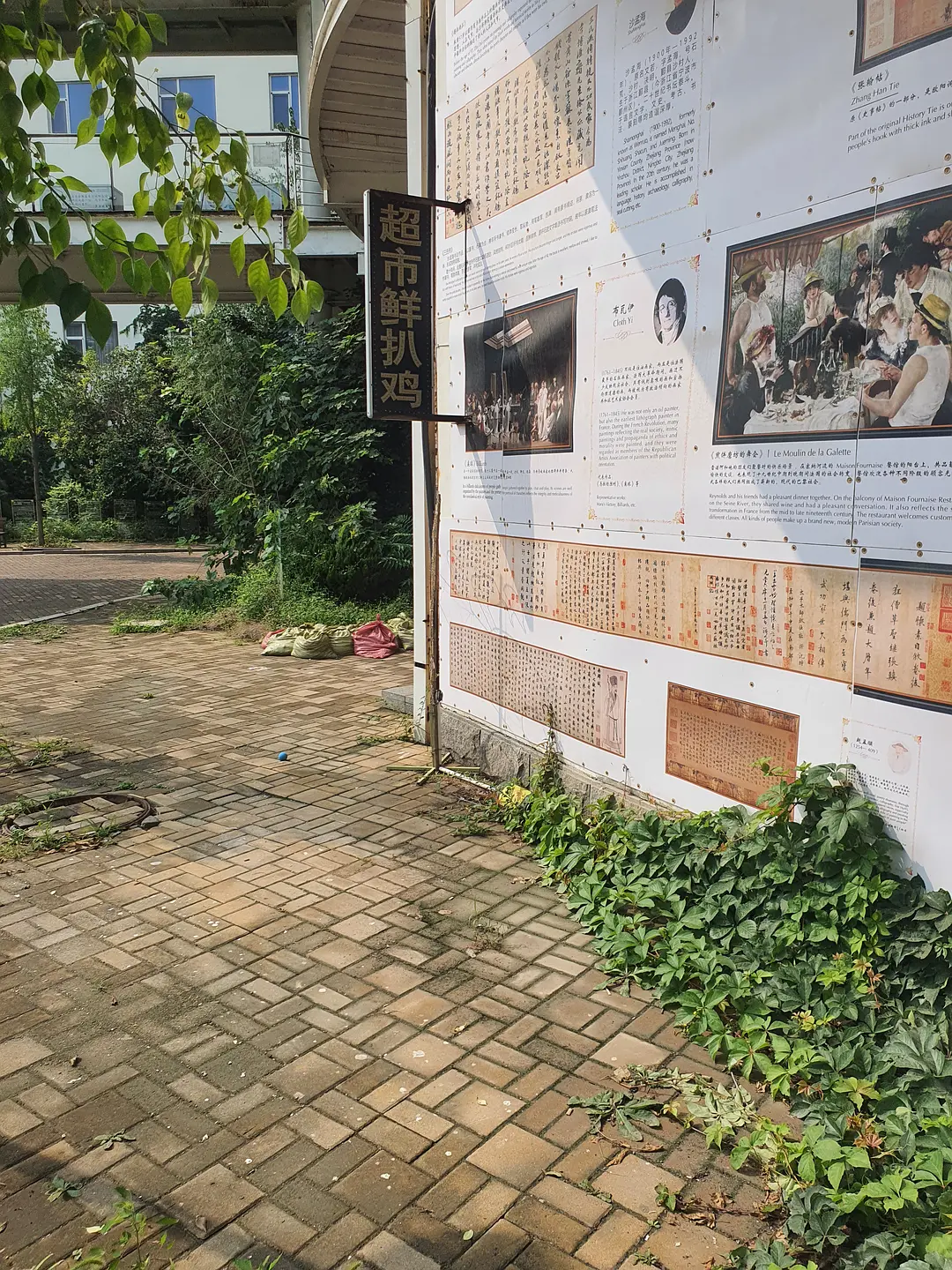 今天去的时候不知道为什么停电了,这就很讽刺了——因为停电,这里的能量供应的确是以太阳能为主,只不过是由植物接收的。爬山虎野蛮地在建筑墙面上扩张,无人修剪的树木阻挡了一些小路。如果说利用清洁能源是为了实现人与自然的和谐共处,那么这里人与自然的交融则非常的不协调。建筑内部缺少维护,地面上到处石子,在这种人类留下的写满了草率的痕迹上,植物仍然在顽强的生长。尽管蝉鸣不断,但是这种如同后现代废墟一样的鬼地方只会让人坏掉。由于太晒,早上也没吃饭,我并没有完整的走一遍,就躲进了儿童活动中心吃小卖部买来的零食。(结果下午回宿舍又被空调吹的腹泻了)