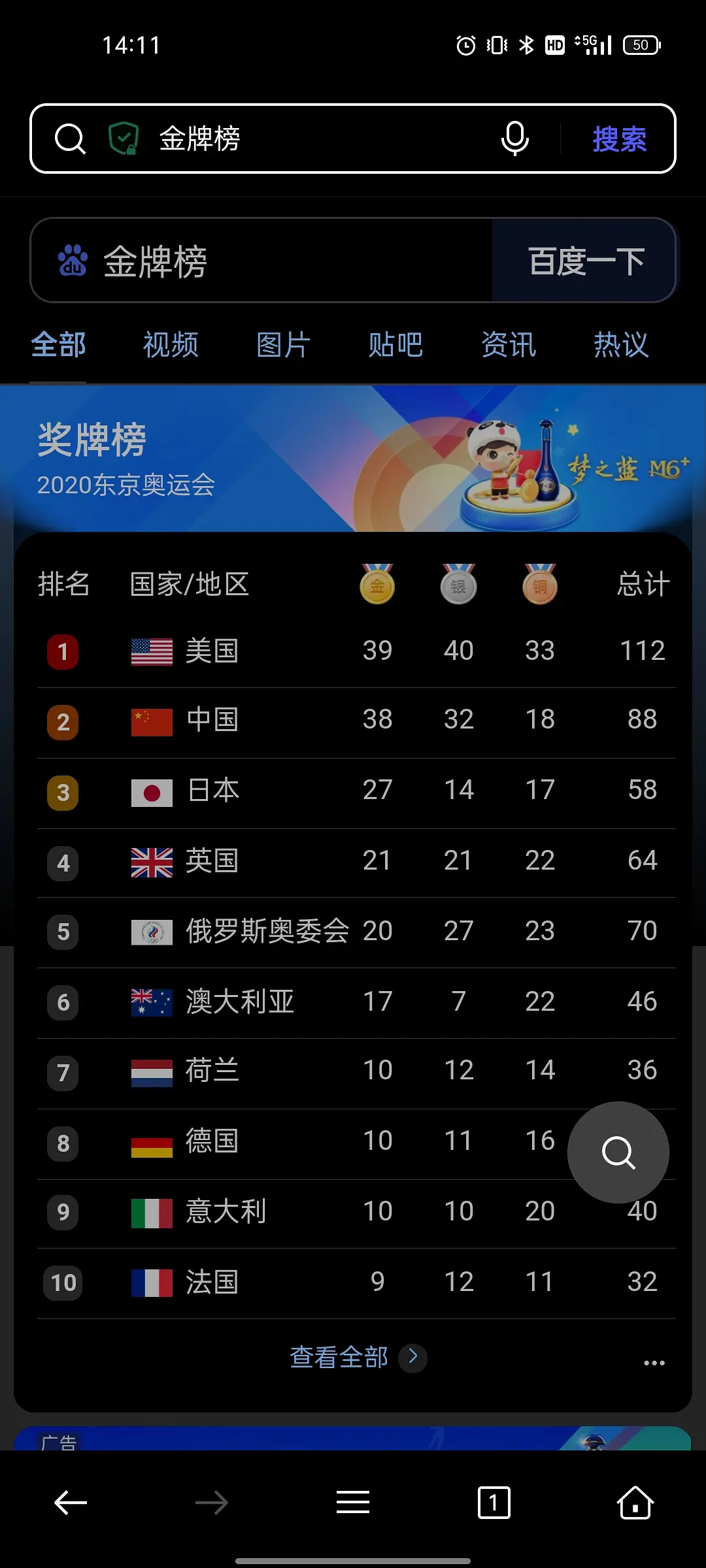 嗨,就算是平手但人家奖牌多,领奖台上还是站第一。