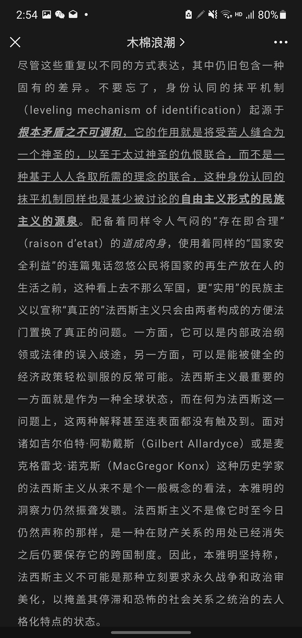 一个想法:束棒的理论出发点都是反科学 反逻辑或者反人类共识的,最体面的束棒也只能说“外面太危险我们必须用这个对冲”来装清白,然而对冲的结果呢,能控制住自己不沦落到宣传以及大众想象(或者说偏执的认为)中一样反智的对面的地步吗,就算依靠海量专精细算,真的是给“神圣的民族的全体”算的吗?