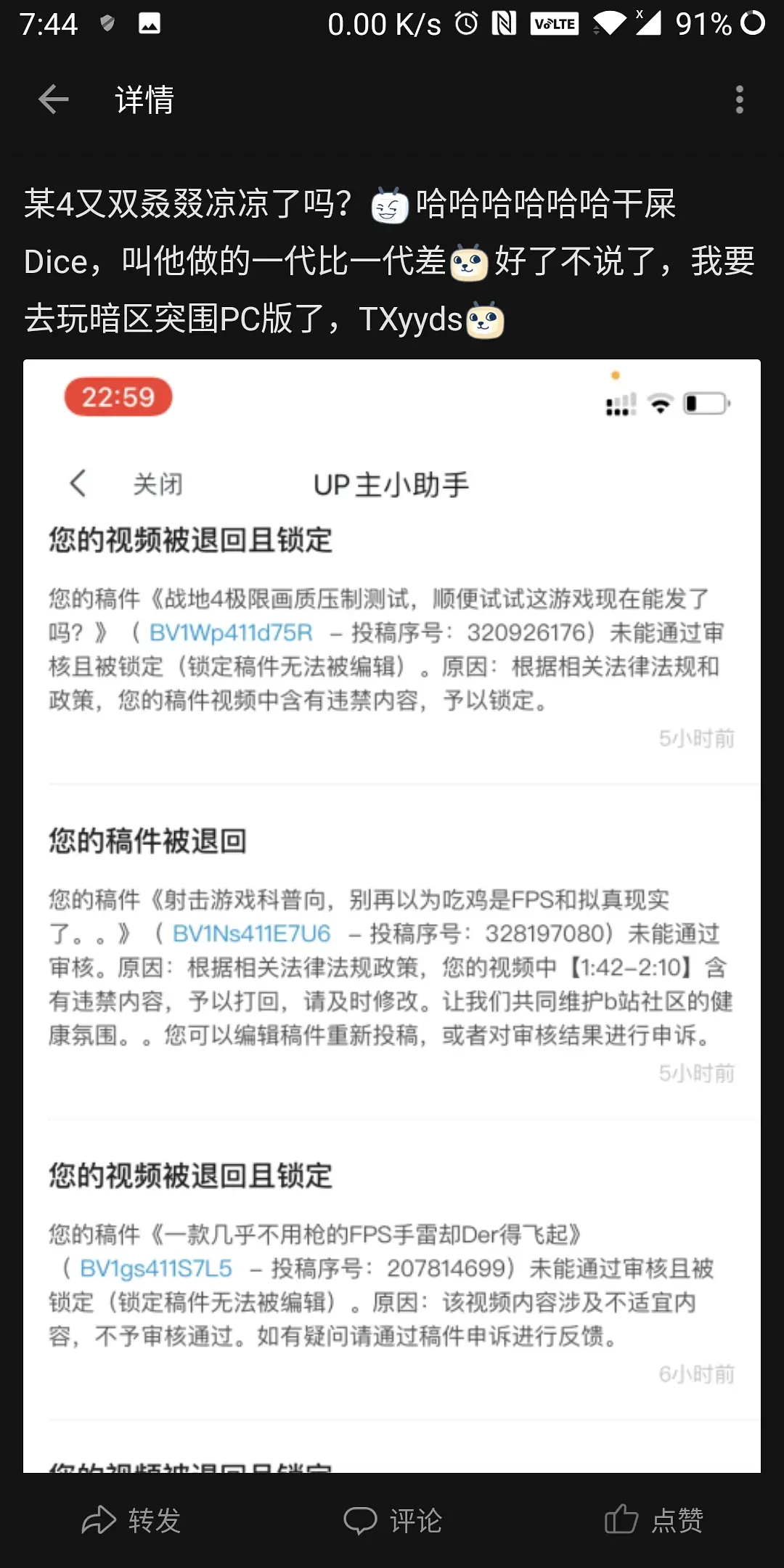 b站再次下架并锁定战地4相关视频
