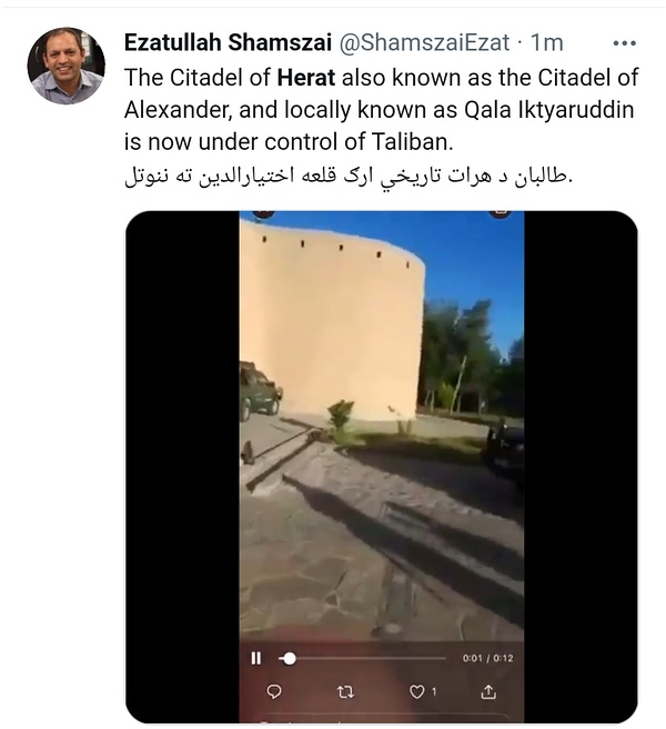 Taliban已经攻占Herat市内主要据点。