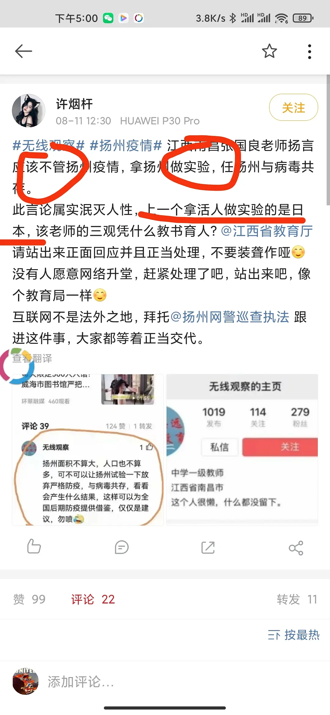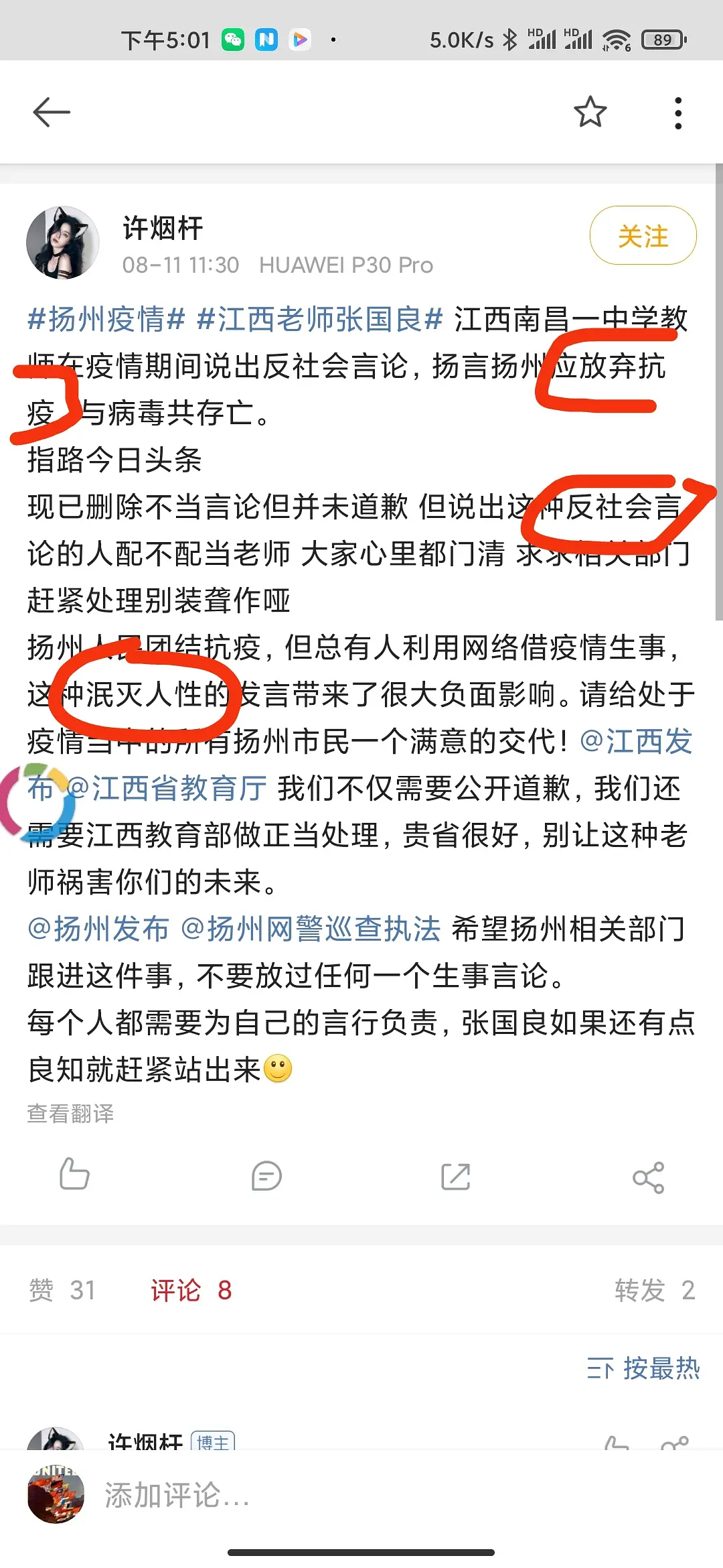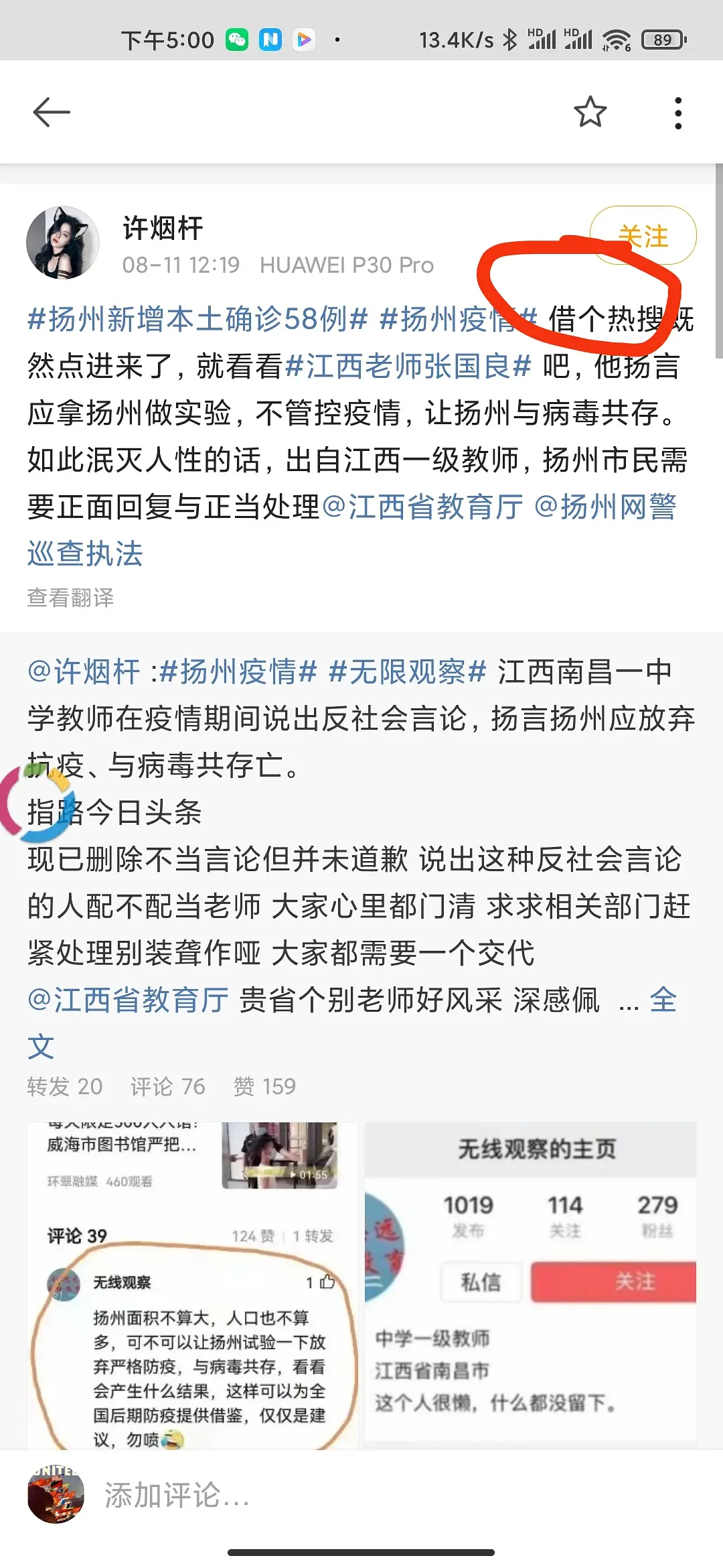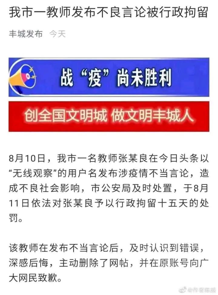 这些言论发表的的确有些不合时宜,当地群众私下骂几句脑残也是可以的,但显然通过这种扩大事端的方法就是在助纣为虐,而且很明显这个老师的话并无任何反人类的倾向,感觉可能就是受张文宏医生此前的言论的影响,说话没过脑子而已