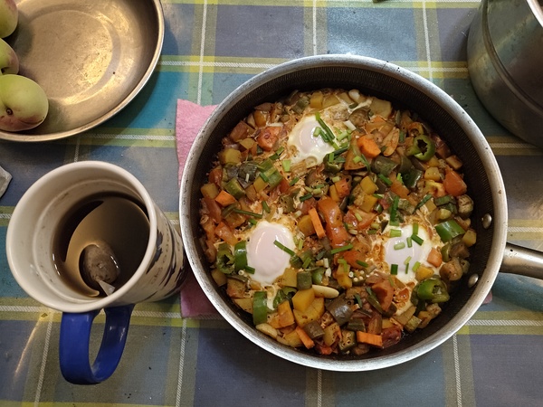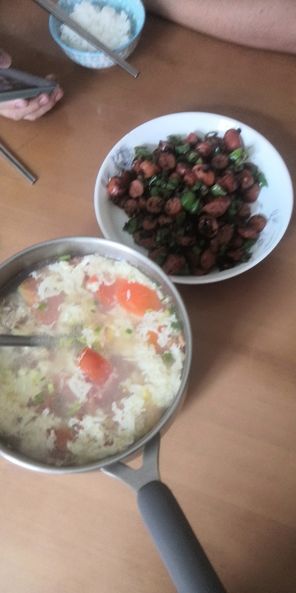 上个月招呼朋友做的番茄蛋花汤以及豆豉辣椒炒脆皮肠。后一样菜的诞生完全是因为家里就剩这么点食材了,但是味道意外地还不错,就是太他吗辣了(尽管我已经提前洗掉了大部分辣椒籽,自己也还算能吃辣),后果是手辣了一天。