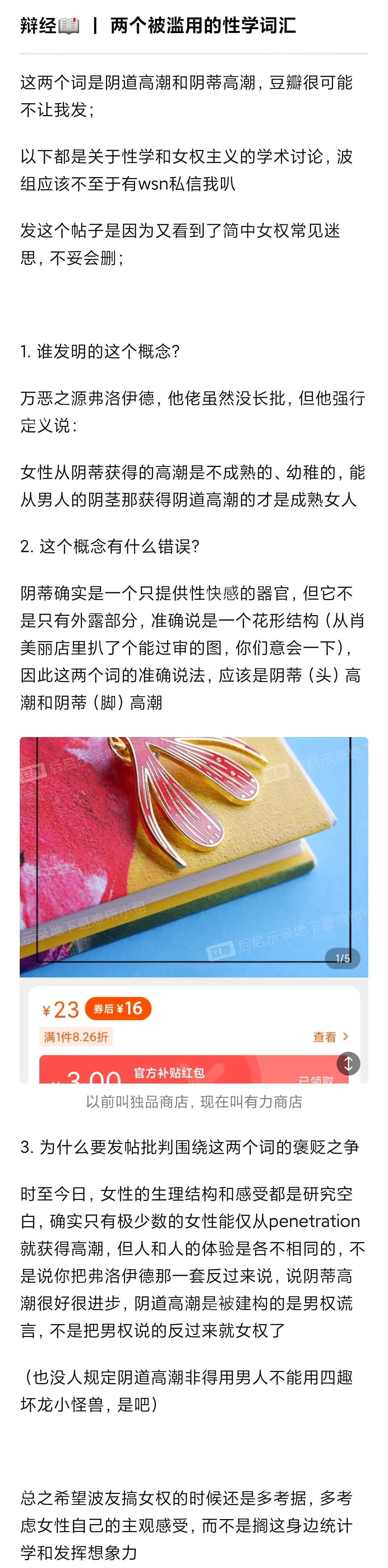 发这贴是因为我在隔壁贴看到了“y道只是生育器官”的暴论,,,