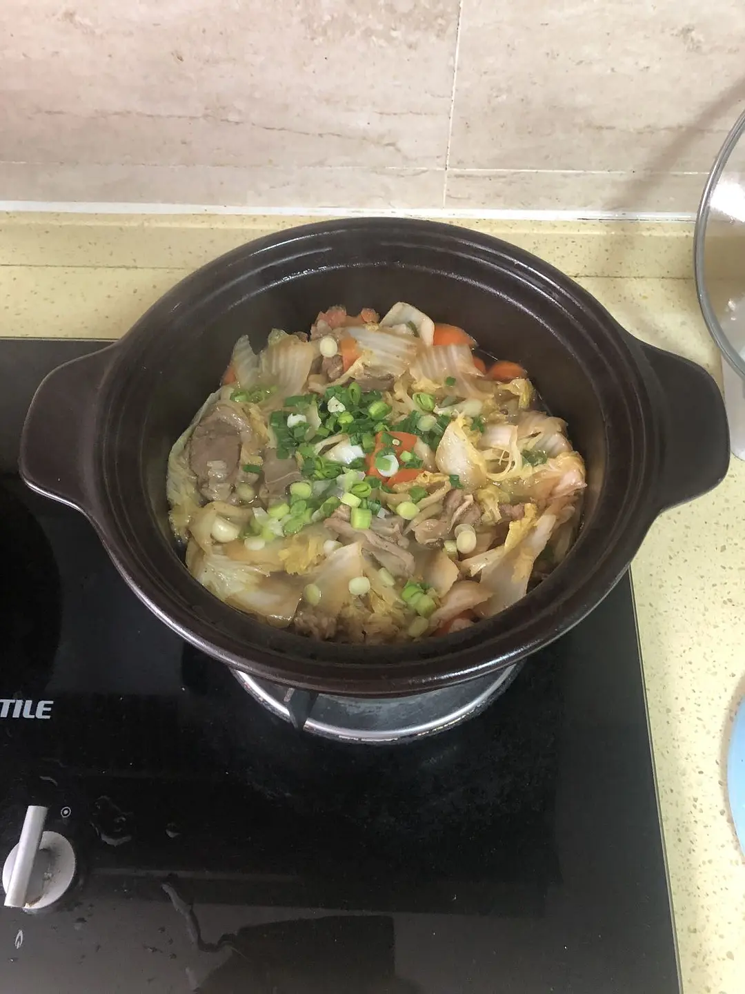 我没太在意。。。羊肉收拾干净后就一直加足水和胡萝卜一起炖了,炖得差不多时候加把白菜,关火盖盖子焖十来分钟,用砂锅的余温焖熟白菜。