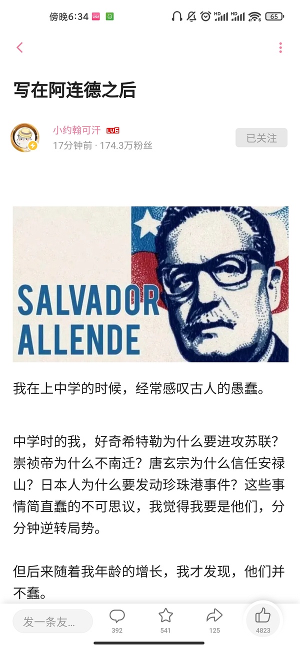 他的粉丝群体显然有一大票粉红。但如果把批评极左的文字指责成粉红,未免太苛刻了。你可以说给粉红提供了弹药,但显然阿连德自己也没有采取极左的方式。