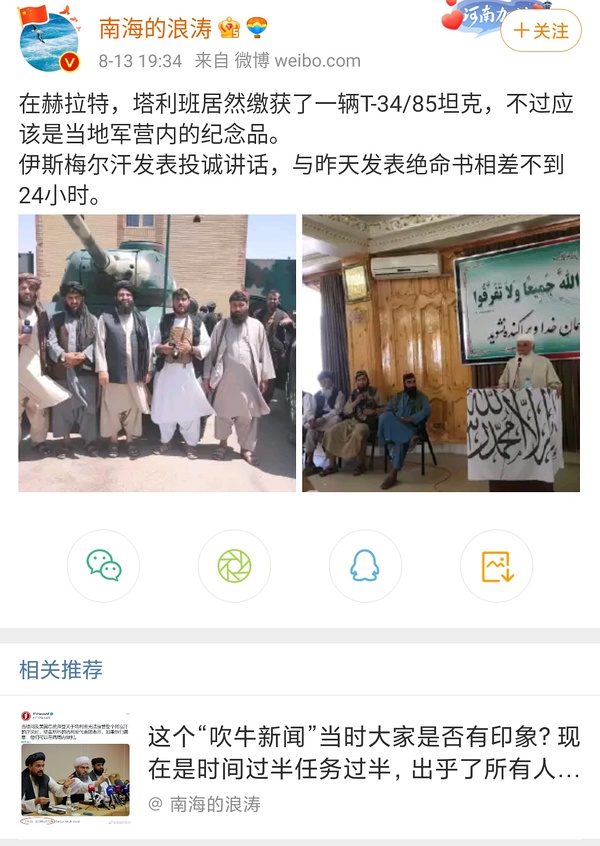 没想到阿富汗正府费拉到这个地步,之前还放出假消息,说派了直升机🚁接走了Ismail Khan