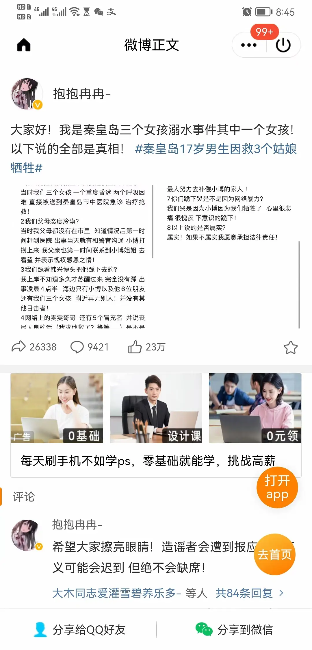 疑似秦皇岛溺水事件真正当事人账号言论拉海文的微光2021/08/13 15:12:18 Loading...Loading...Loading...装受害女孩,装受害女孩家属那几个热度狗着实是过于司马了 Loading Spinner