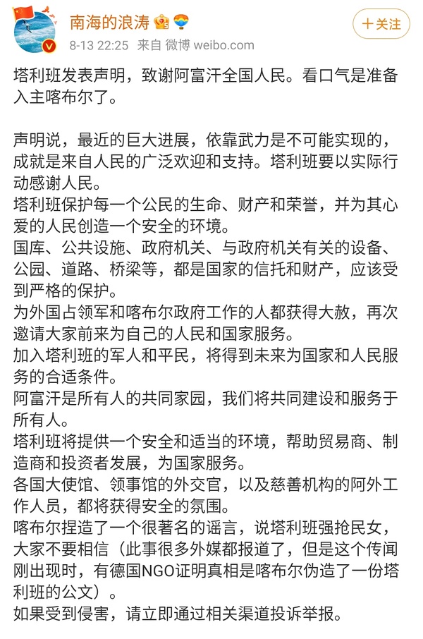 Taliban的声明,Taliban目前的态度似乎是之前的事情都是Omar发疯(晚年县中.jpg),和我们现在没关系