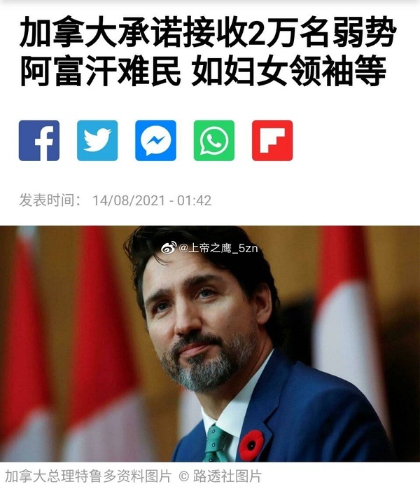 加拿大同意接受2万名“弱势阿富汗难民”:妇女领袖、人权活动家、记者、受迫害的少数民族、LGBT、翻译官家属