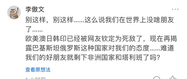 我当时就在想,每个阶层之间思考的差距如此巨大。(绝大多数)波友(所在的阶级)不能理解城乡老保封建人,实际上他们也不能理解波友自认进步进了个p步。同理,赱友🦇也难以和我这种普通小市民互相理解。在他们的眼里,他们的生活方式才是“正常”的。我觉得你组在讨论一些退步话题现象的时候不要一味的倾倒黑暗感想大肆批判不知存不存在的劣根性,更要设身处地想想在他们的角度除此之外还能怎么做呢?如果没的选,为什么?如果有得选,为什么不选别的路?这才是最重要的