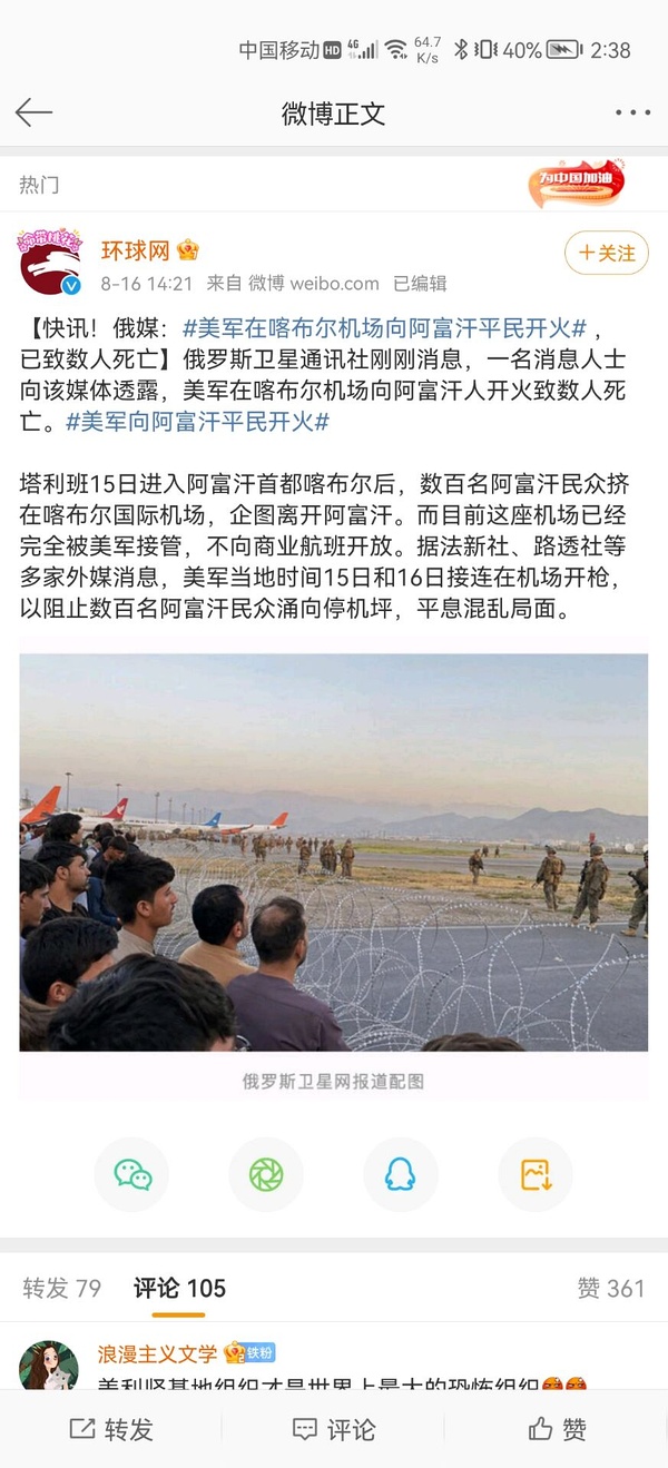 塔利班进城后的各路泛左心态十分有趣。有幸灾乐祸阿共(毛) 的,有类似主贴这种借所谓塔利班惩罚犯罪暗示“美帝及其傀儡何等无能”,贩卖民族主义反美经书的,估计如果塔利班“积极门户开放”(我认为是大概率事件),随时准备盛赞之的也是大有人在。