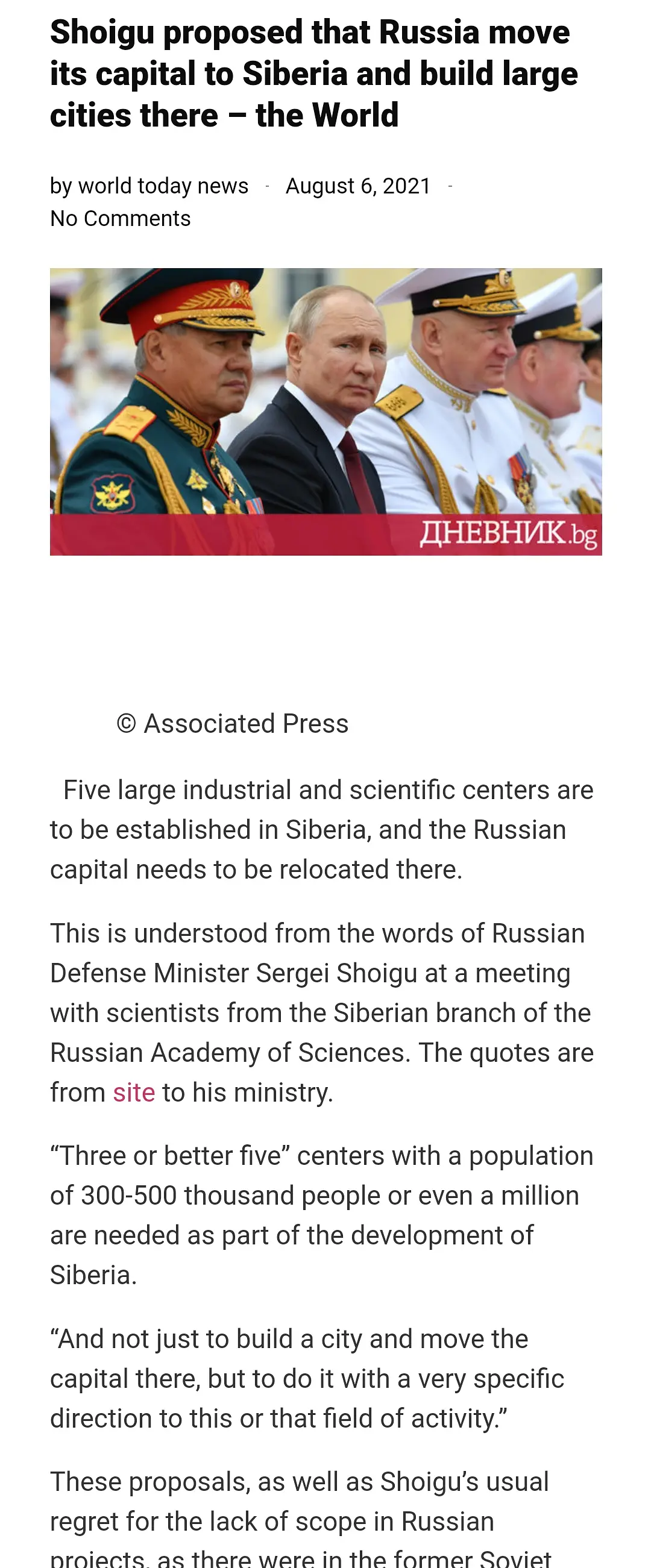 绍伊古提议在西伯利亚建新都あかざあかり2021/08/16 06:21:01 属于是有点作死了😅,也可能是纯的炒作,提高曝光率。不过感觉鹅国上层是非常害怕对中亚、阿尔泰和外满洲失去控制。Loading... Loading Spinner