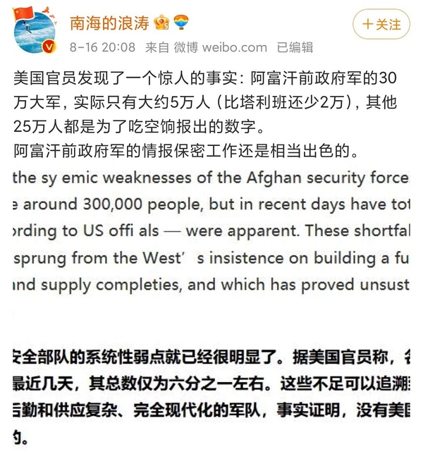 美国撤军后所扶持的阿富汗政府为什么难以持久?已删啊遥2021/08/16 11:39:49 2008从伊拉克撤军后,伊拉克政府虽然也经历极端主义和外部渗透的威胁却没有被颠覆 Loading Spinner
