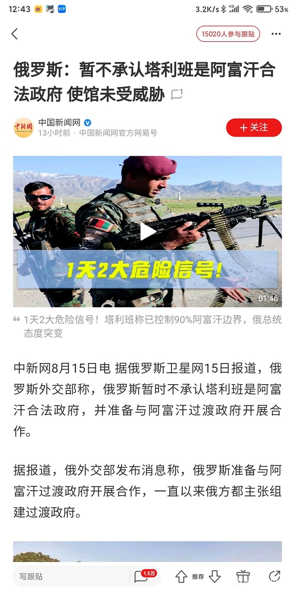 之前和加尼竞争2014年和2019年总统大选的Abdullah Abdullah也留在喀布尔配合TLB了,2014年大选以后为了安抚失败的Abdullah Abdullah特地给他创设了首席执政官一职。看来喀布尔政府很大程度还是被内部爆破了。