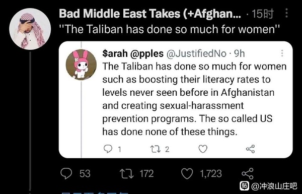 但是塔的反动毋庸置疑,因为他们是由从出生穷到现在,只能读宗教学校受教育的吉哈德主义者组成的。至于女人算不算人,大概看塔什么时候巩固了政权吧