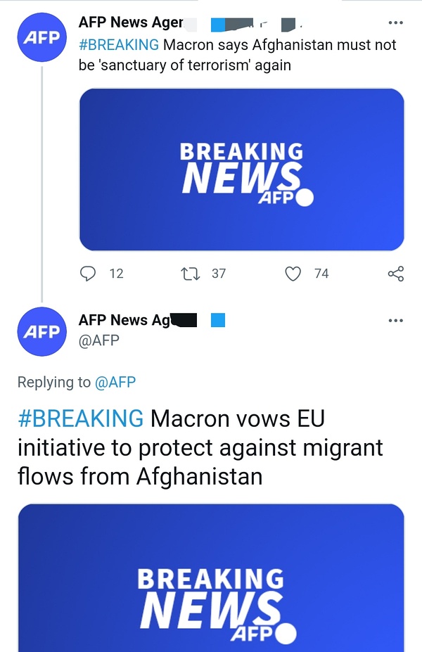 马克龙称要阻止前往欧盟的大规模阿富汗难民