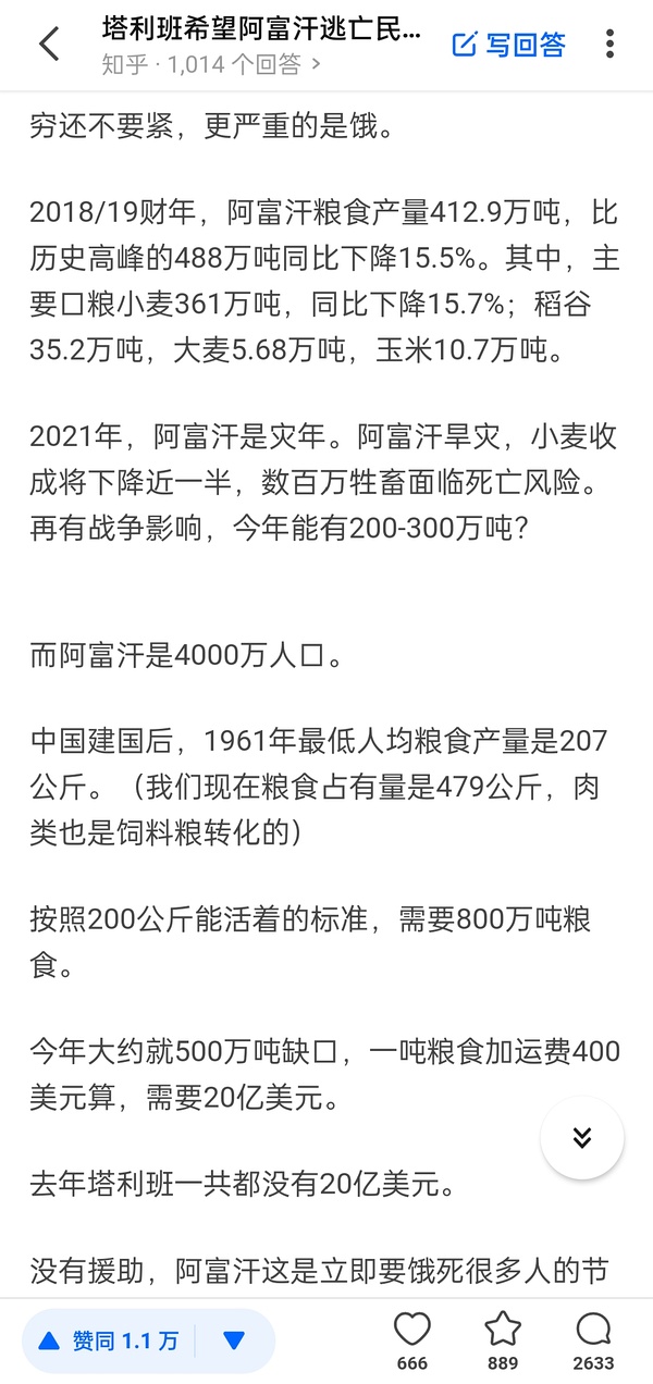 真就和拜一样天真🤣鸽派鹰派一家人双簧,管个屁,粮食援助下去,你看阿富汗壬是感谢国际还是感谢枪杆子,真拿到了人家还觉得阿富汗人民重新站起来了,粮食援助怕不是又养成个曹县,粮食援助的五分之一给还能抵抗塔的壬不好么