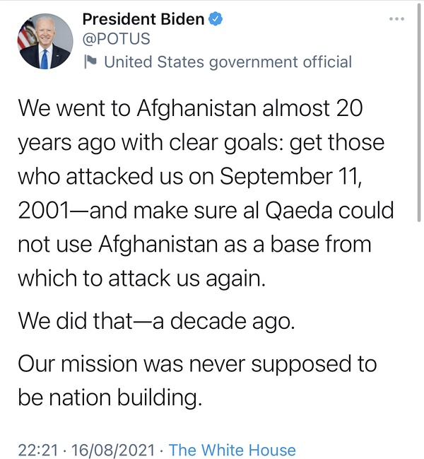拜登对阿富汗问题的讲话