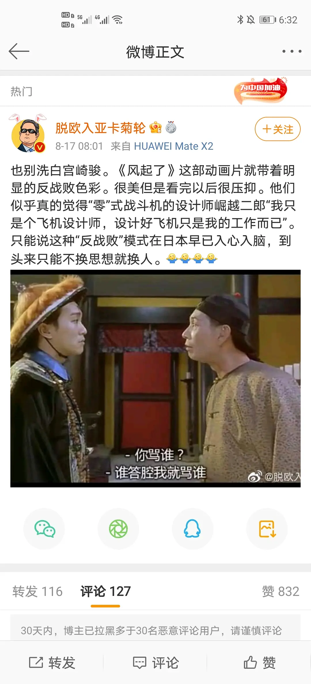 你要猎宫崎骏不如去猎他家室,人老爸可是正儿八经的二战战犯(