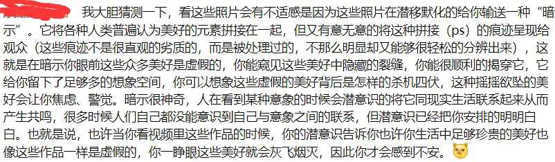 我有小题大做吗?有人会认为,这只是因为经费没有投入,只是因为这些素材是现成的。但是我想唱个反调。反问两句,“为什么这些素材是现成的?为什么这些素材惊人的一致,没有特色?”。我以为,这些素材更广泛,如此一致,是因为素材的制作者也压根没有考虑去搜集其他的,这些搜集的过程,当然是以“美”为优先原则的,这意味着他们几乎必然不会把城市和自然的丑陋做成素材。后来设计的生产,自然是在这些素材的基础之上的,不然你就得亲自搜集,对于买设计的人来说,显然是按不花哨的,流程简单的性价比更高。对于广告来说,它本来就不需要多精细,它得大量,而且转瞬即逝。它的目的就是将种种在场的恶心变换为权力的不在场,美好的在场。