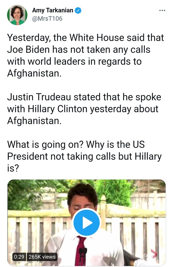 Link Icon 特鲁多表示组织紧急撤退的时候联系不到拜登,是和希拉里讨论了相关事情😅