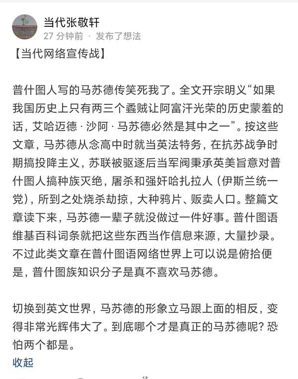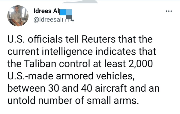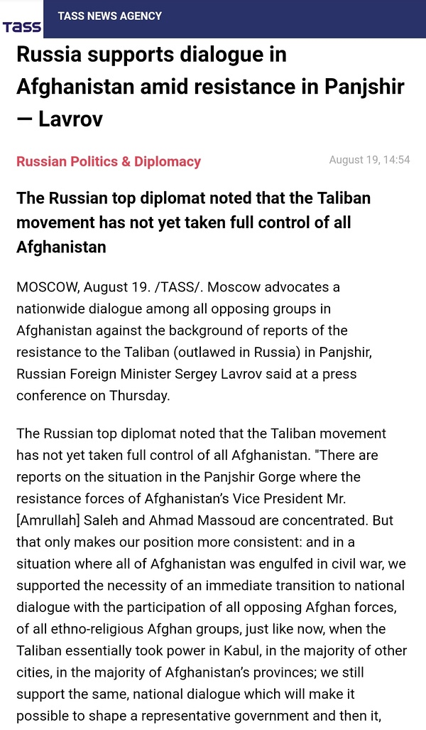 Link Icon https://www.washingtonpost.com/opinions/2021/08/18/mujahideen-resistance-taliban-ahmad-massoud/ 小马苏德亲自开了个号去华盛顿邮报发声要弹药支援补给,看来底线是割据,反攻还是名义臣服,得看形势发展了