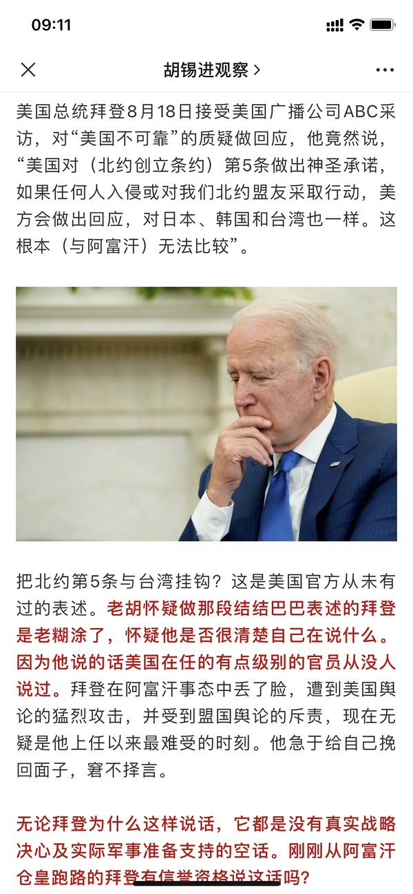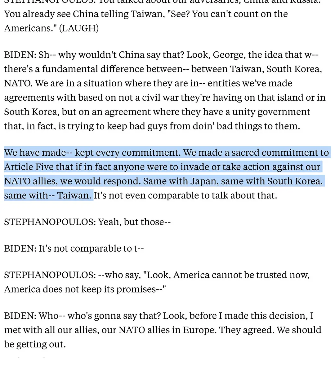 拜登这句话其实是在暗指《带碗关系法》,实际上米是单方面宣布对带碗的保护,这也是带碗自信心爆棚的原因