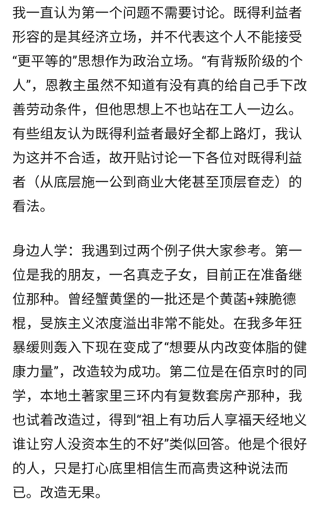 问题是什么叫“既得利益者”,难道这个体系中有谁是纯粹的被压迫者吗?