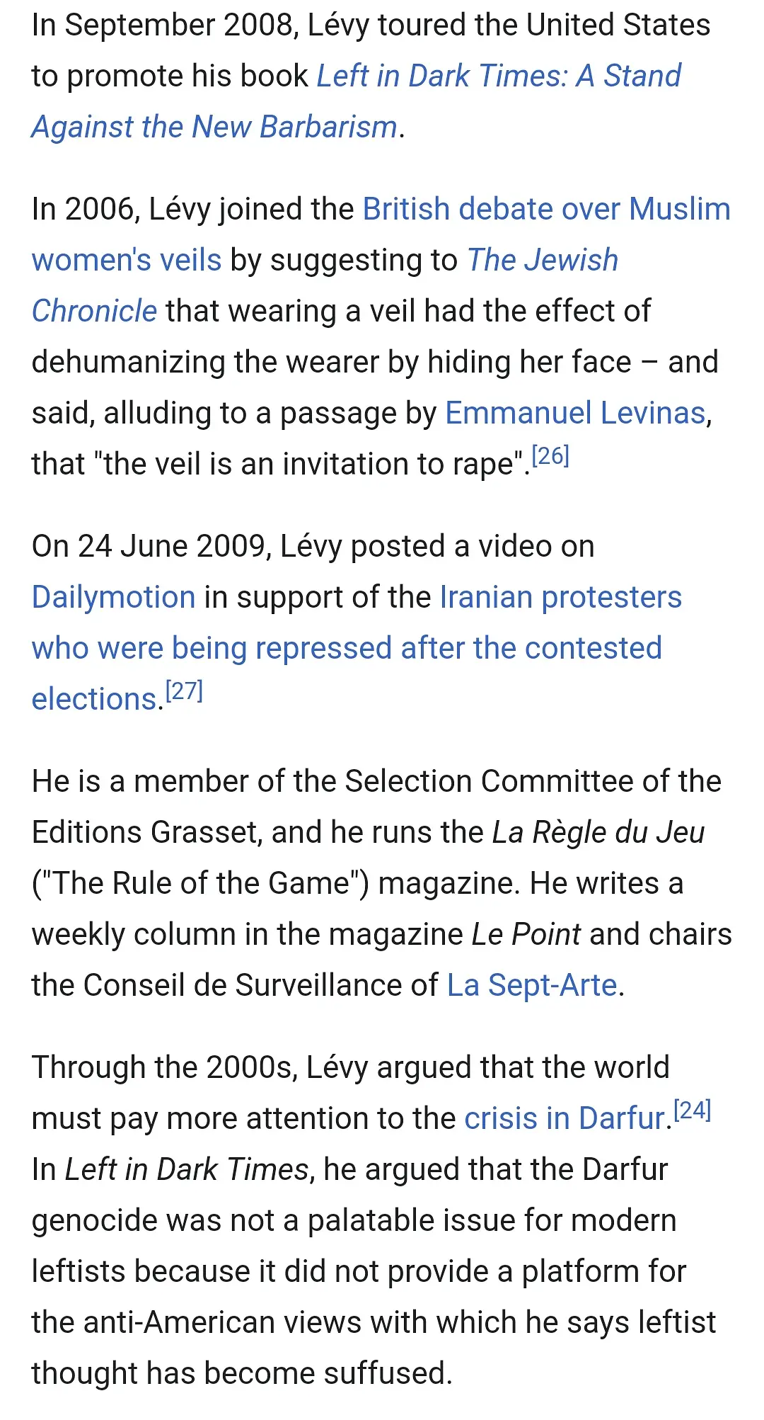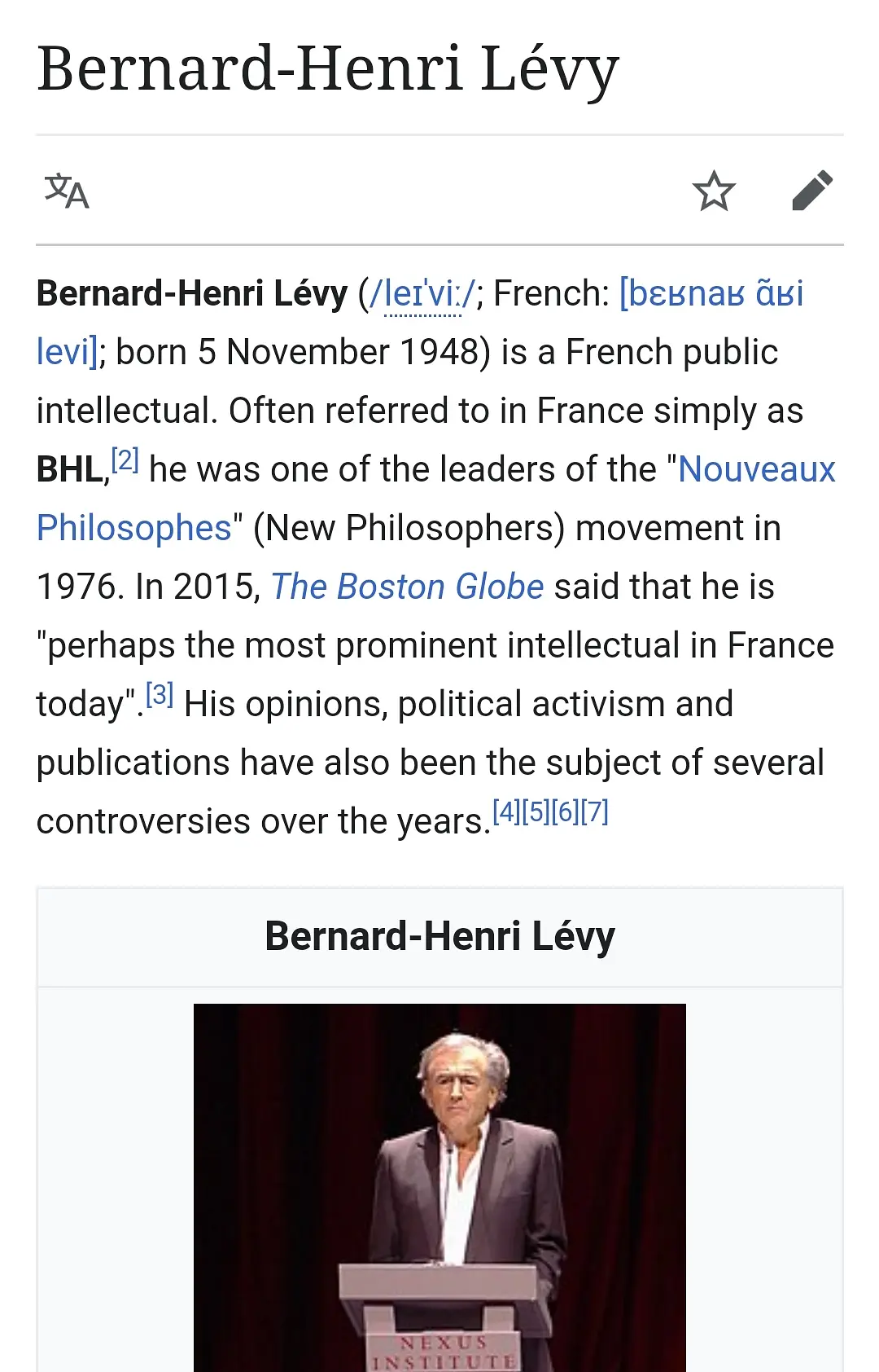 看英文维基,感觉Bernard-Henri Lévy(BHL)似乎是法国的真·国师,但是此人的中文资料几乎没有。请问他的指导思想大致是怎样的?有没有人可以指导一下?马苏德家族和此人走的非常近(也不知道怎么拉上关系的)。