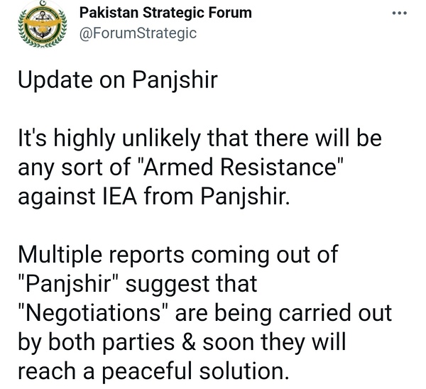 Link Icon 可能小马苏德真的拿下帕尔旺省省会了,看之前北方联盟冰队上街的城市很大的,不像是河谷里狭长的潘杰希尔省会
