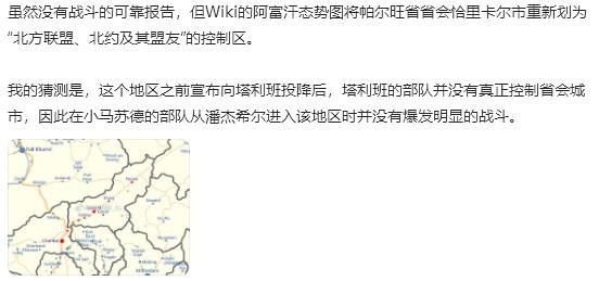 可能小马苏德真的拿下帕尔旺省省会了,看之前北方联盟冰队上街的城市很大的,不像是河谷里狭长的潘杰希尔省会