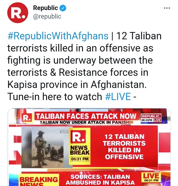 印度方面称TLB在Kapisa省遭到伏击,被打死12人